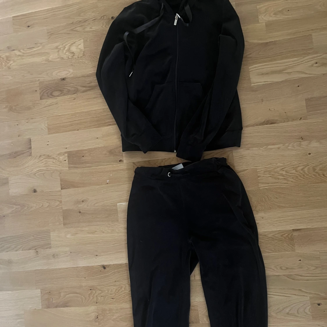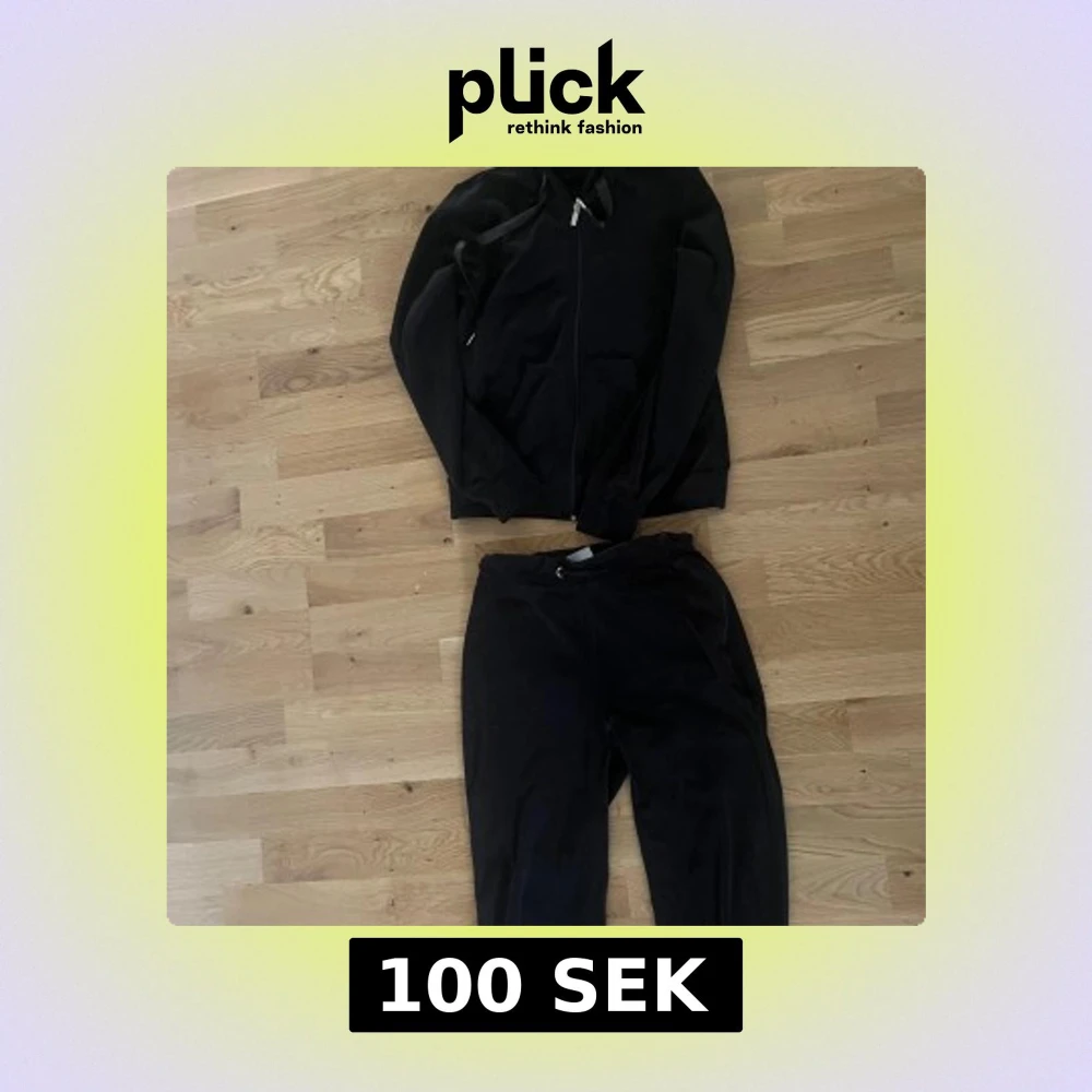Svarta mjukis set i mjukt material med resår och snörning i midjan. Byxorna har två bakfickor och en avslappnad passform. Perfekta för chill dagar eller när du vill vara bekväm. Matchar enkelt med en hoodie eller t-shirt.