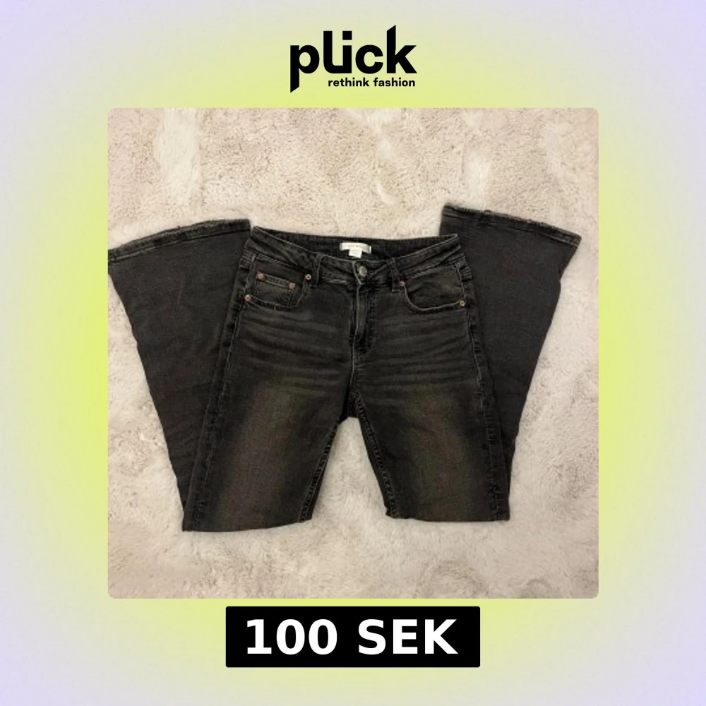 Snygga svarta bootcut jeans från Gina Tricot med klassisk femficksdesign och lätt tvättad look. Jeansen har normal midja och vida ben som ger en cool siluett. Perfekta för dig som gillar en trendig och avslappnad stil.