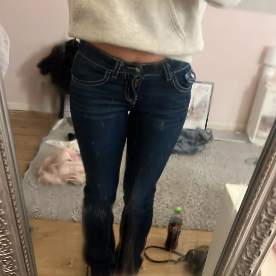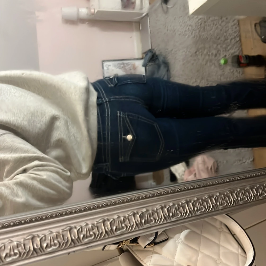 Säljer ett par mörkblå jeans, från Gina Young. Storlek är 158 men passar 158-164. Är själv 163 lång och dom sitter bra i längden på mig och är ganska stretchiga.
