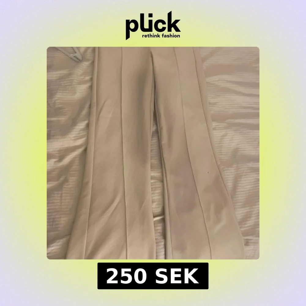 Snygga beiga kostymbyxor från Gina Tricot i storlek XS. Byxorna har raka ben, pressveck framtill och dold dragkedja med hake i midjan. Perfekt för en clean och stilren look. Materialet känns mjukt och har en lätt struktur.