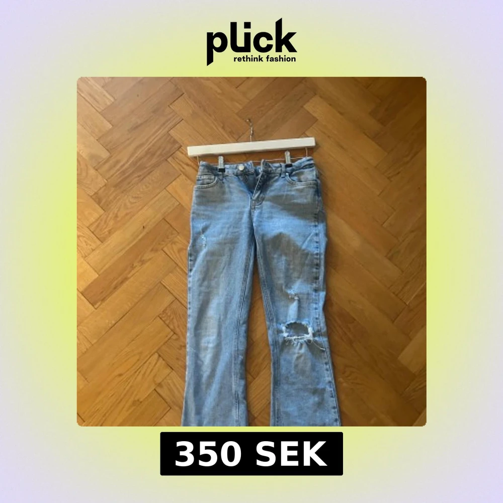 Säljer dessa snygga blåa bootcut jeansen från Gina Tricot med slitningar på benen. Säljer då de inte passar mig längre! Inga större defekter förutom det man kan se på sista bilden. Köpta för ca 2 år sedan men inte jätte använda