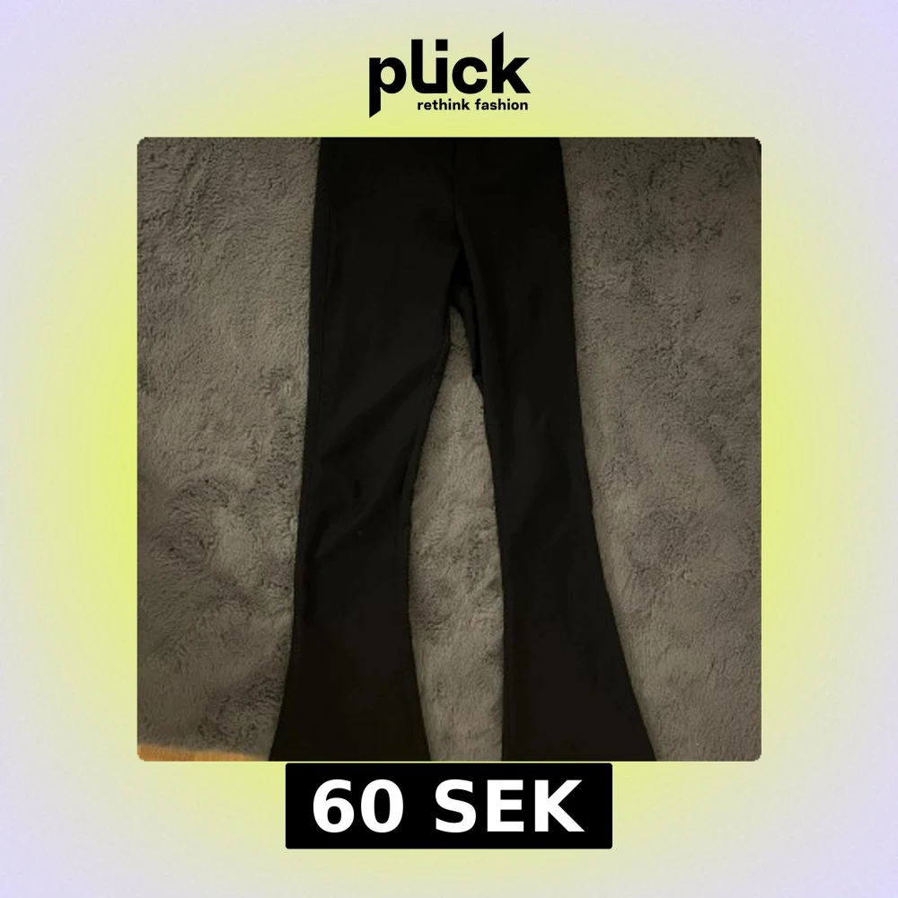 Snygga svarta kostym byxor med bootcut passform och en ficka med knapp bak. Byxorna har hög midja och är perfekta för dig som gillar en klassisk men trendig look. Materialet känns mjukt och följsamt, och de har bälteshällor i midjan.