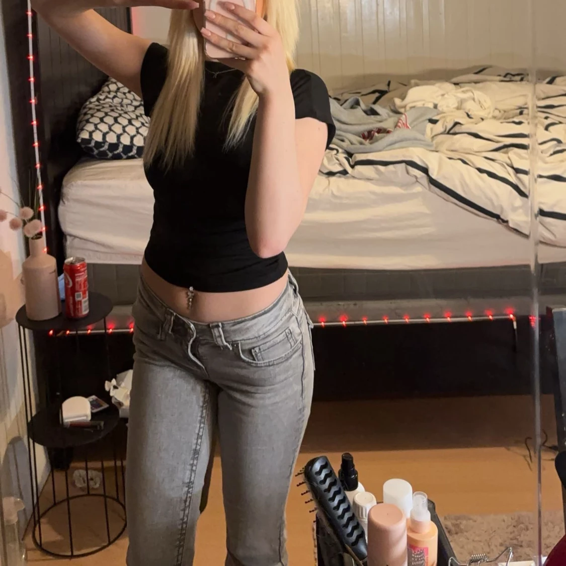 Säljer ett par snygga grå jeans med bootcut och låg midja. Jeansen har klassisk femficksdesign och raka ben som blir lite vidare nertill. Perfekta för dig som gillar en avslappnad men trendig look.