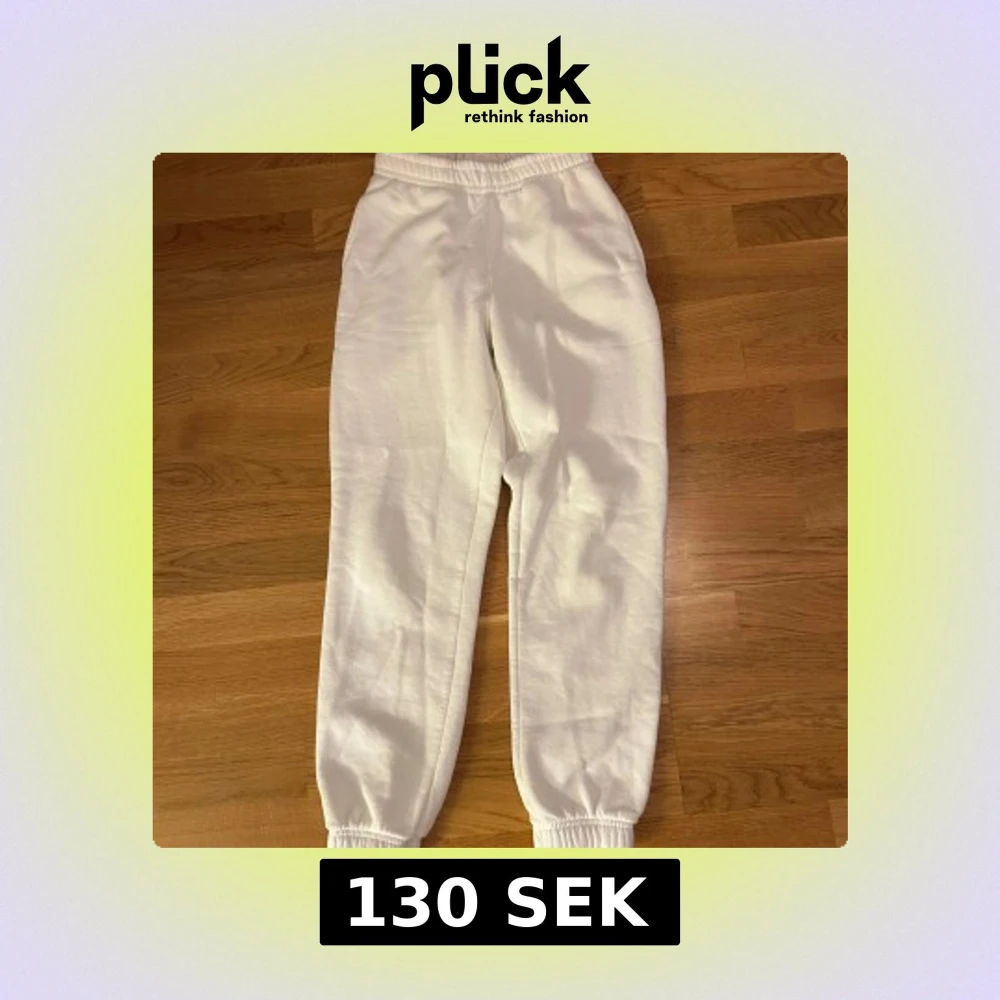 Vita mjukisbyxor från Gina Tricot med resår i midjan och vid bensluten. Byxorna är tillverkade i mjukt bomullsmaterial och har en avslappnad passform som är perfekt för chill dagar. Klassisk och enkel design utan synliga detaljer.