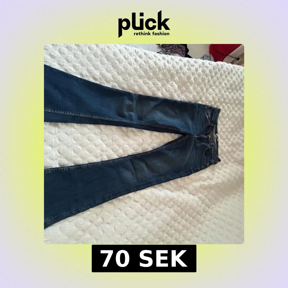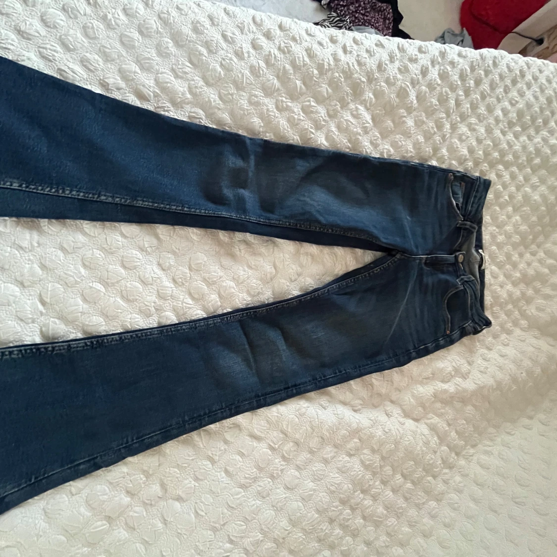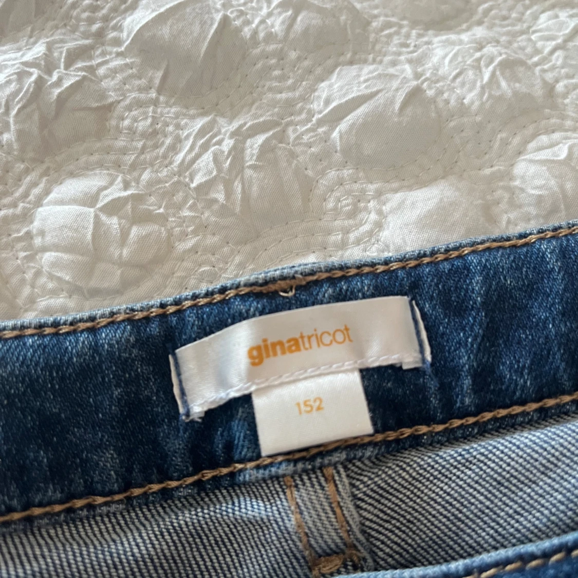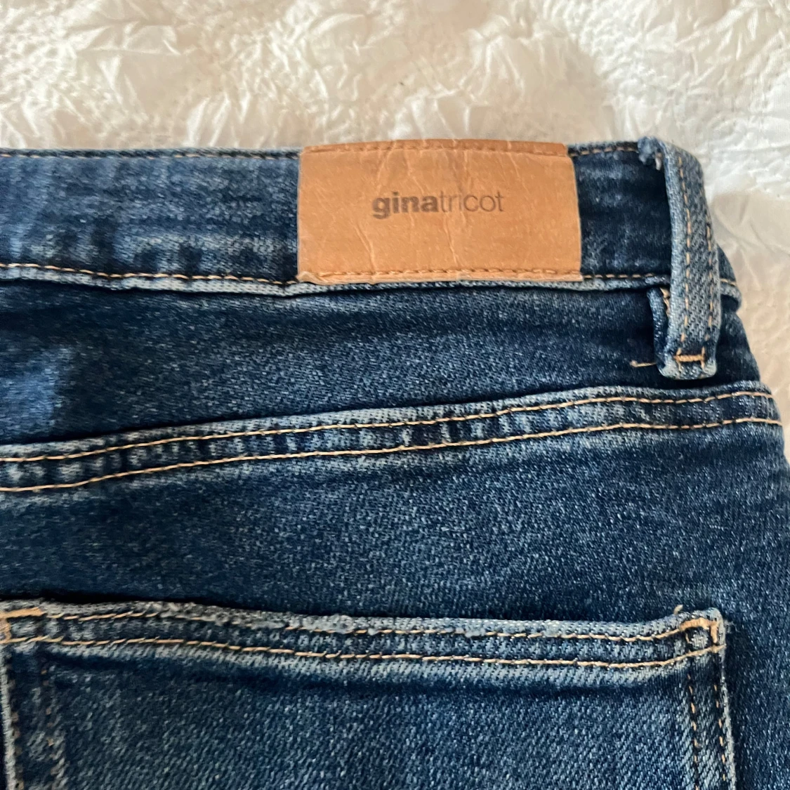 Snygga blå jeans från Gina Tricot med bootcut-stil. Den lilla slitningen man kan se på sista bilden ger en cool liten detalj.