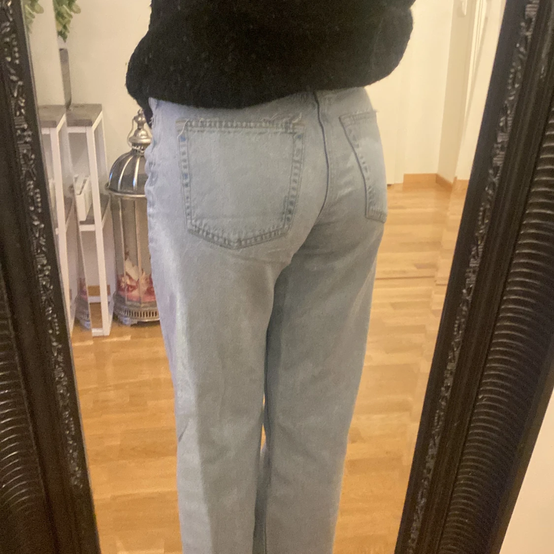 Ett par blå jeans med slits vid fötterna som sitter jättebra och är perfekt raka. Säljs då de inte kommer till användning längre:)