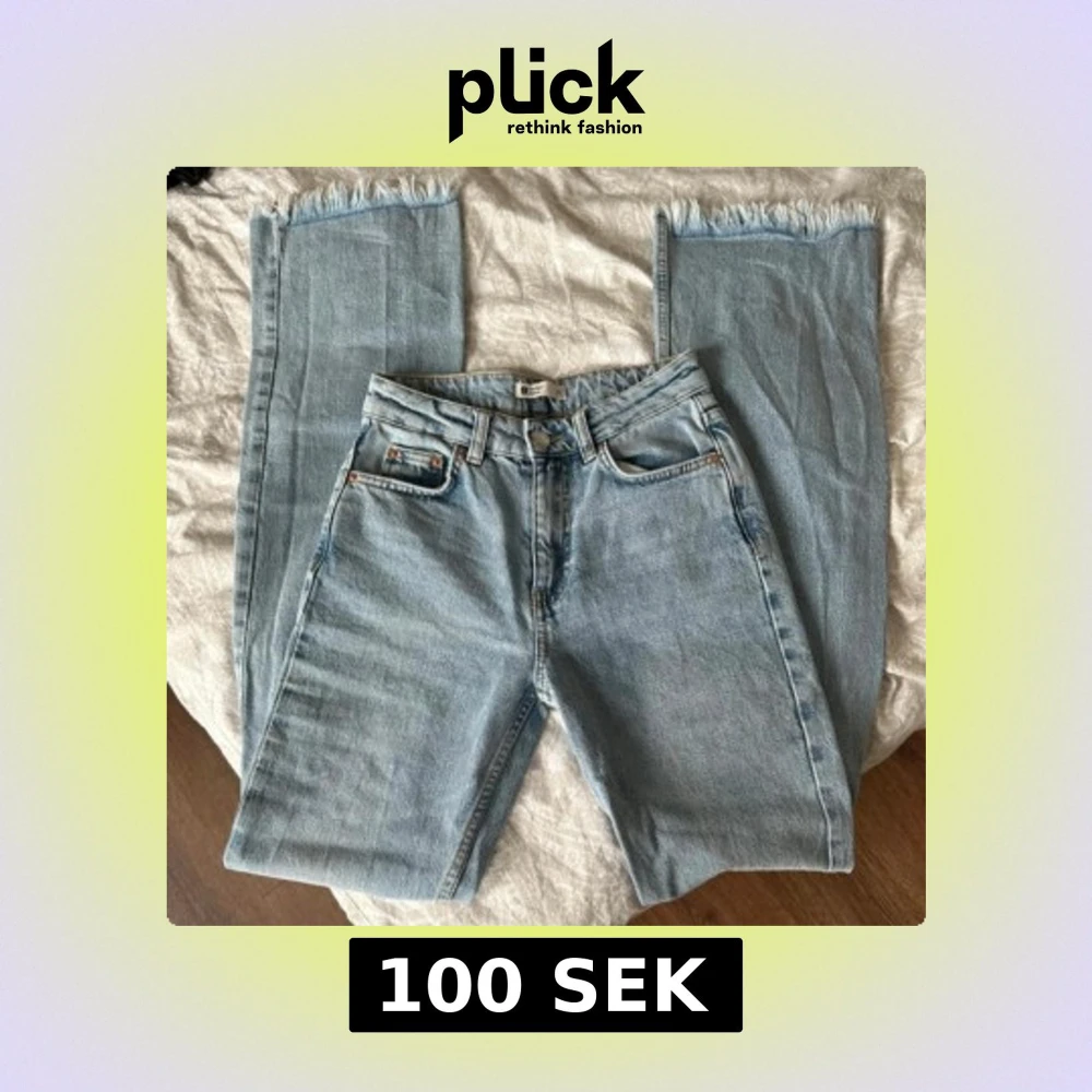 Säljer ett par ljusblå jeans från Gina Tricot. Jeans med raka utsvängda ben och snygga fransiga kanter nertill. Klassisk femficksmodell och hög midja. Perfekta för en chill och trendig look. Dom är även långa i benen.