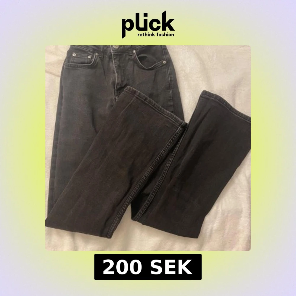 Snygga svarta jeans från Perfect Jeans (Gina tricot) med klassisk femficksdesign och knappgylf. Perfekta för en stilren look, dessa jeans har en rak passform och är tillverkade i ett slitstarkt material. Lågmidjade och bootcut