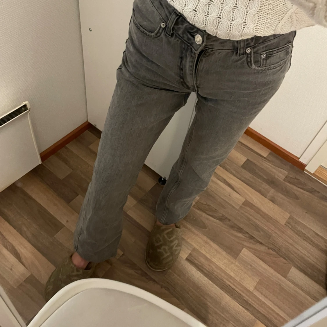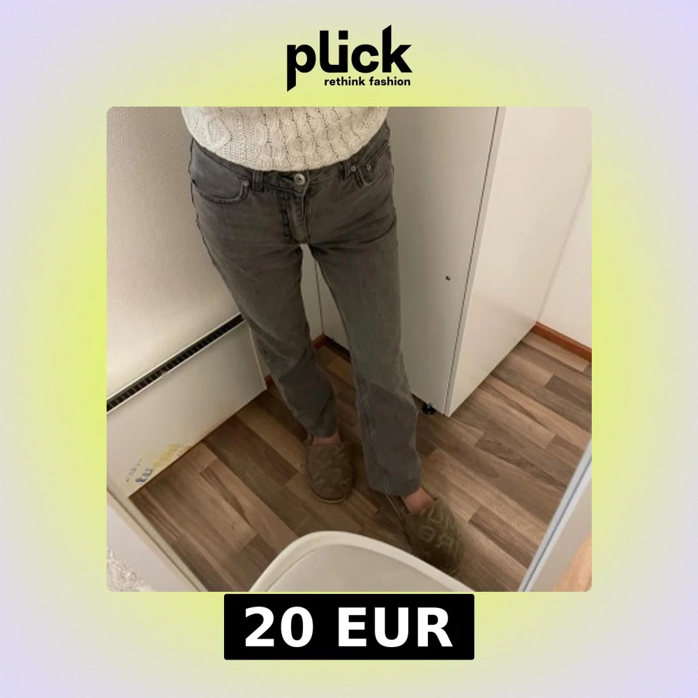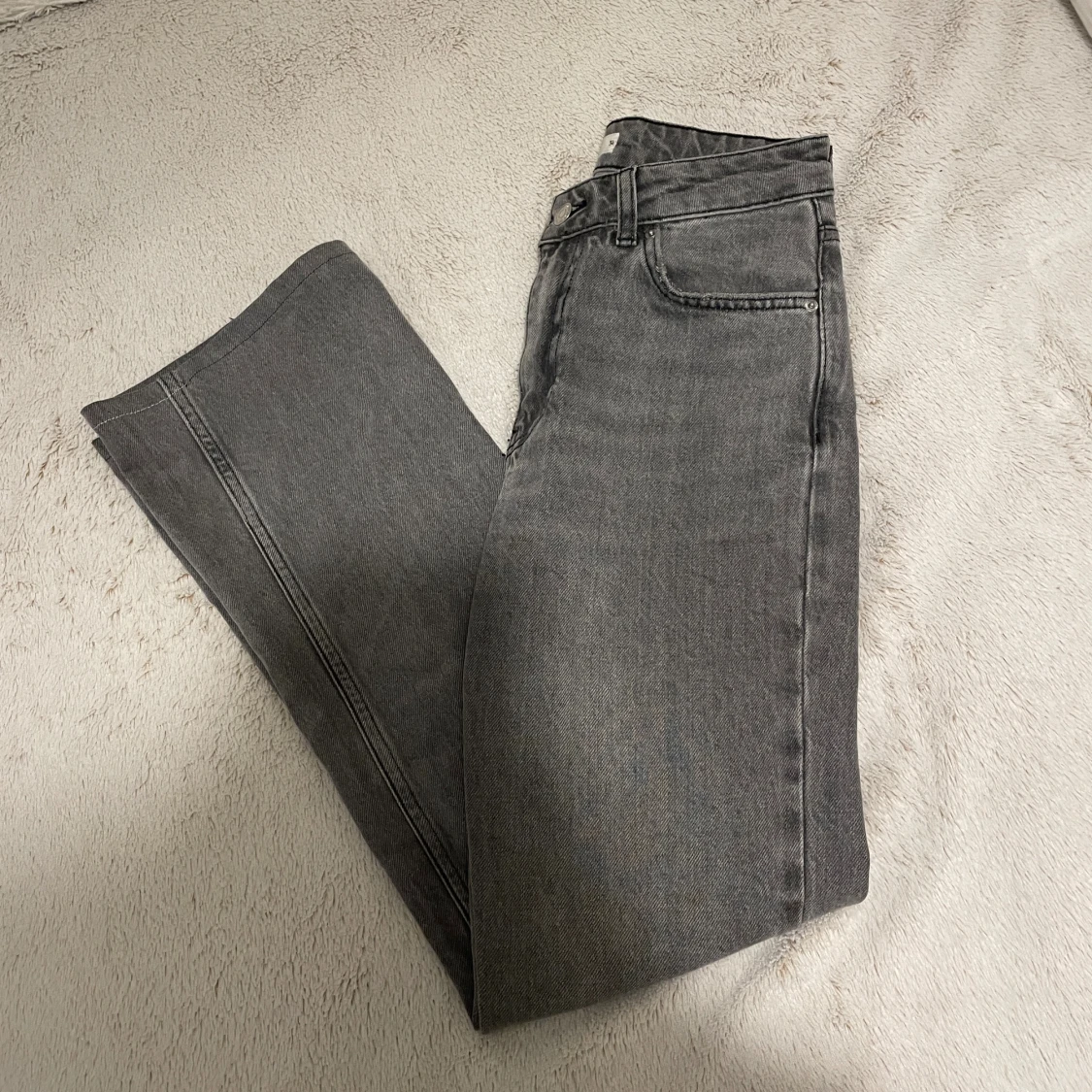 In great condition grey Gina Tricot jeans in size 34/XS. The jeans have been shortened. Measurements: • Length from waist to hem: 99 cm • Waist width: 33 cm I’m 168 cm tall, and these fit nicely on someone shorter as well, or up to around 170 cm. Model number: 16968-2022 (sold-out style). Original price: €49.99 Material: 99% cotton, 1% elastane. More pics: https://www.vinted.fi/items/7138323403-ginatricot-full-length-flare-jeans