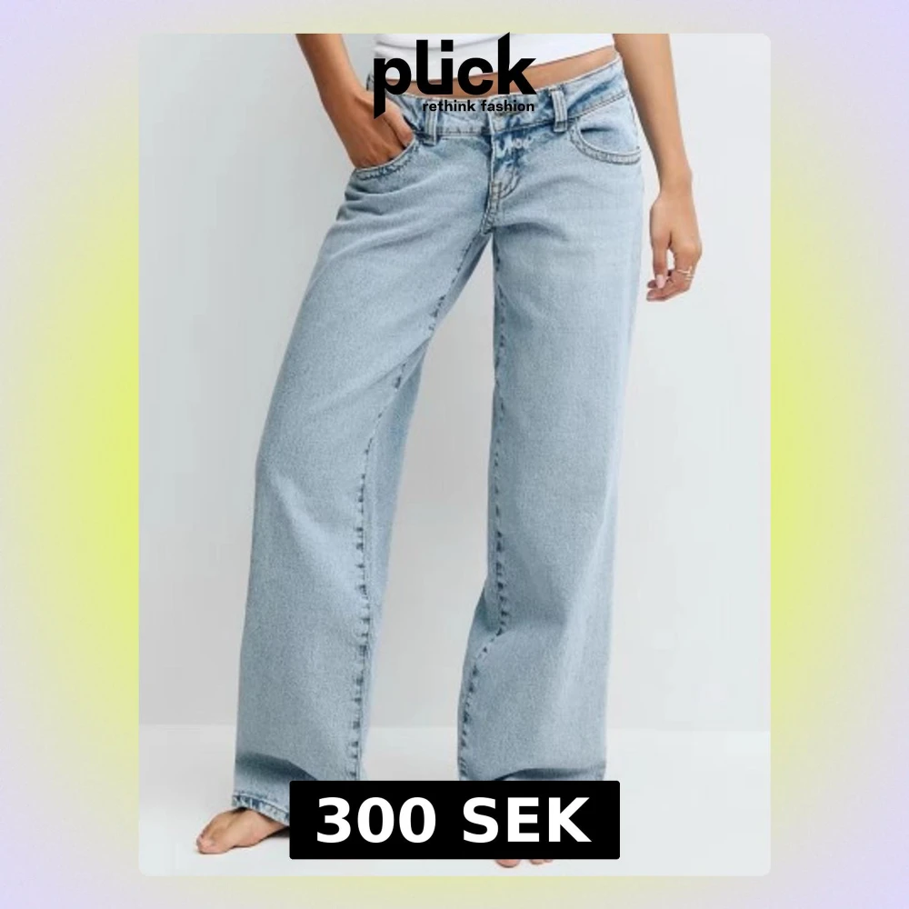 Endast använd två gånger, blå low waist baggy jeans från Gina tricot som just nu är slutsålda. Säljer endast då de är för små på mig.