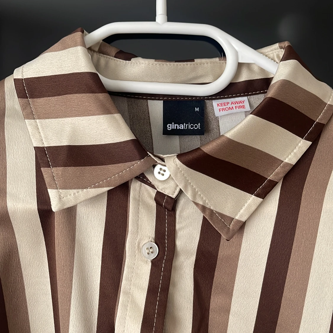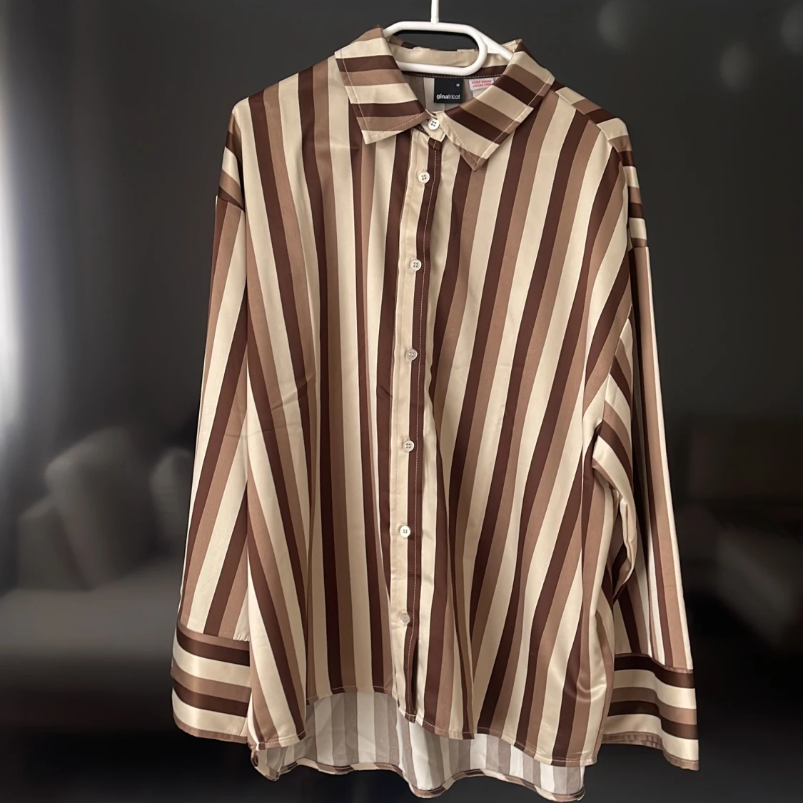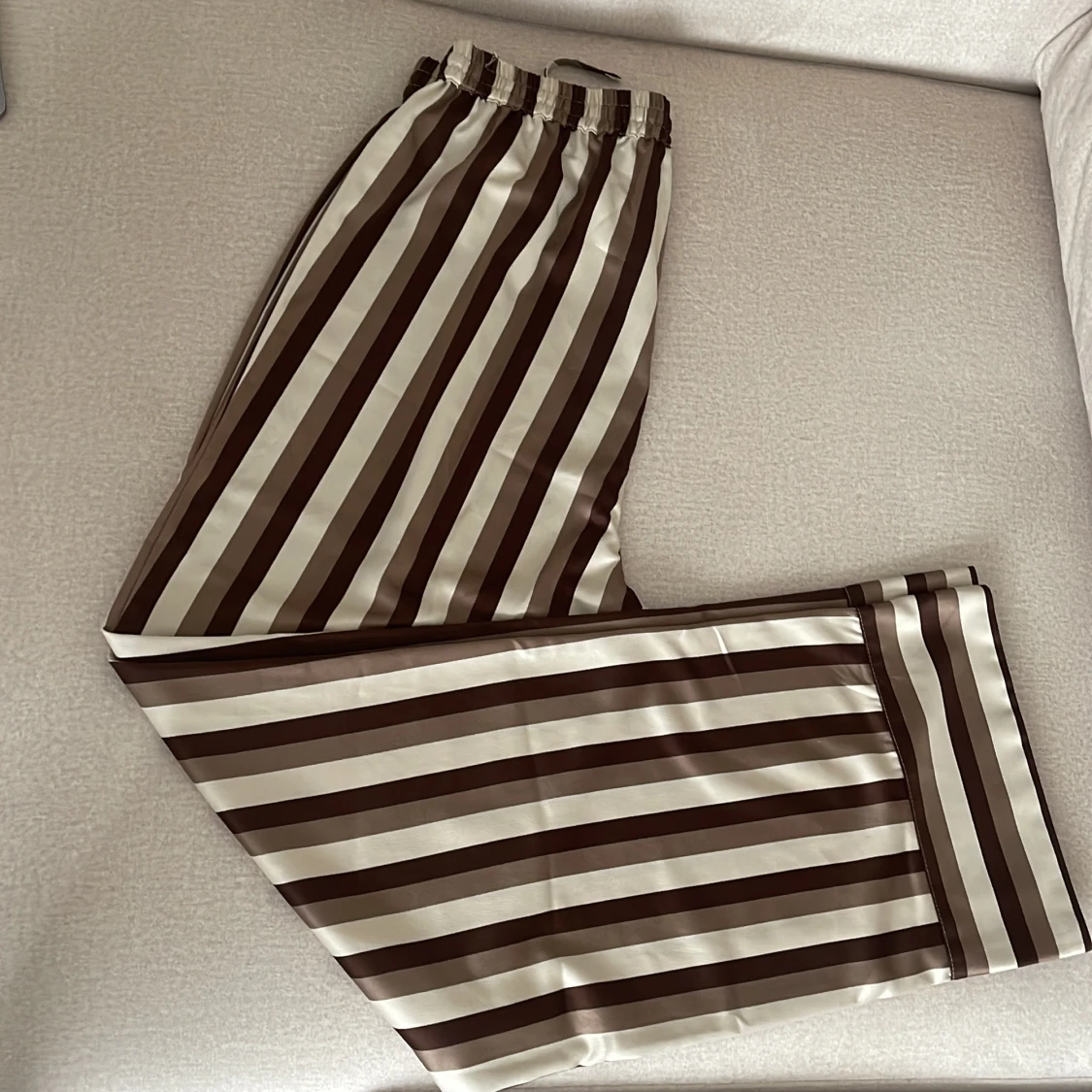 Jätte fint randigt set i jordfärger, detta är ett helt nytt sett som inte kommit till användning. Både över och under delen är i storlek M men passar för er i storlek L.