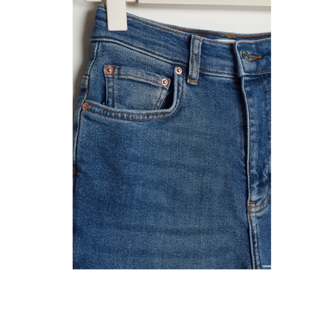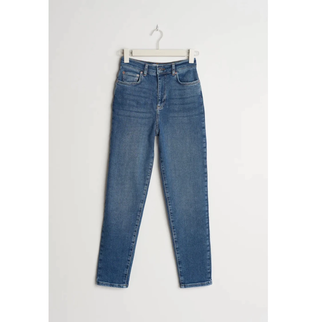 Mörkblå Mom jeans ifrån Gina tricot med stretch i storlek 40 (passar även mindre och större). Använda 1 gång. Köparen står för frakten.