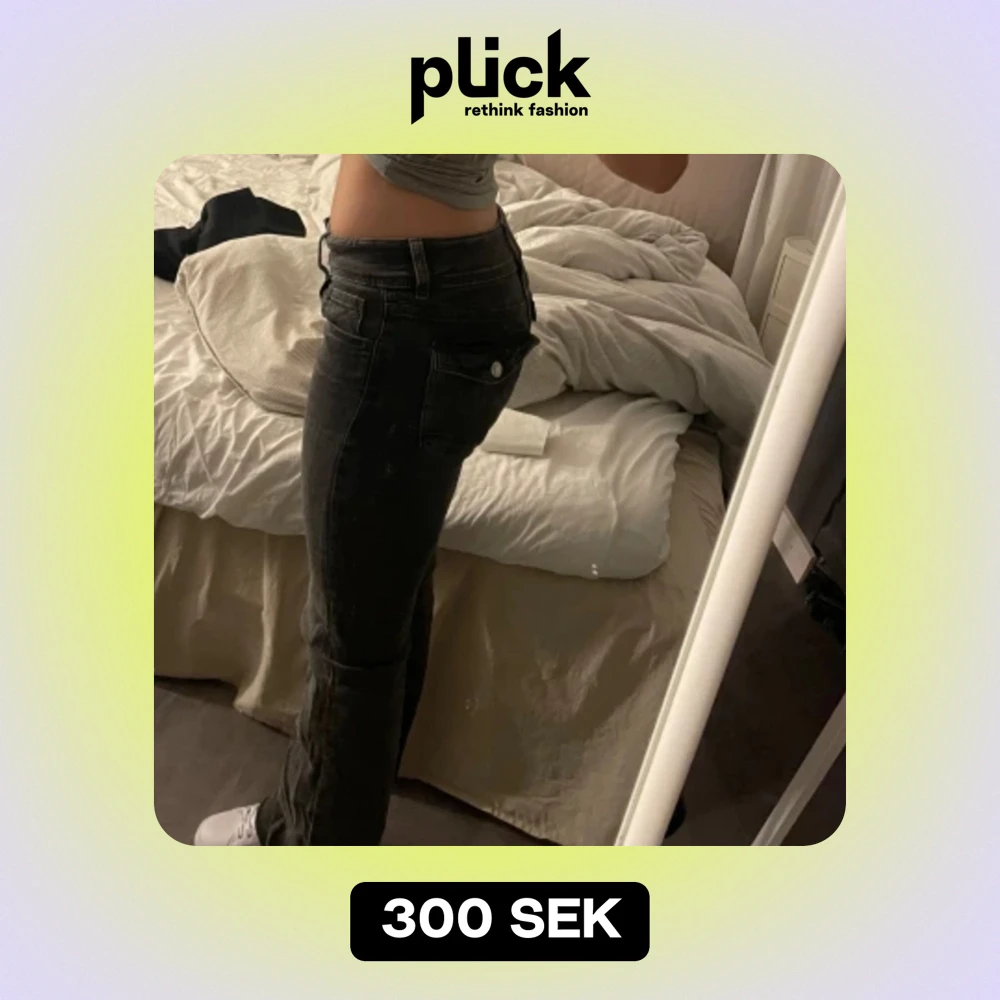 Ett par grå-svarta jeans som är bootcut och low-waist, är storlek 164 men passar xs och s, inga defekter och är inte använda så mycket. Perfekta till skolstarten🩷
