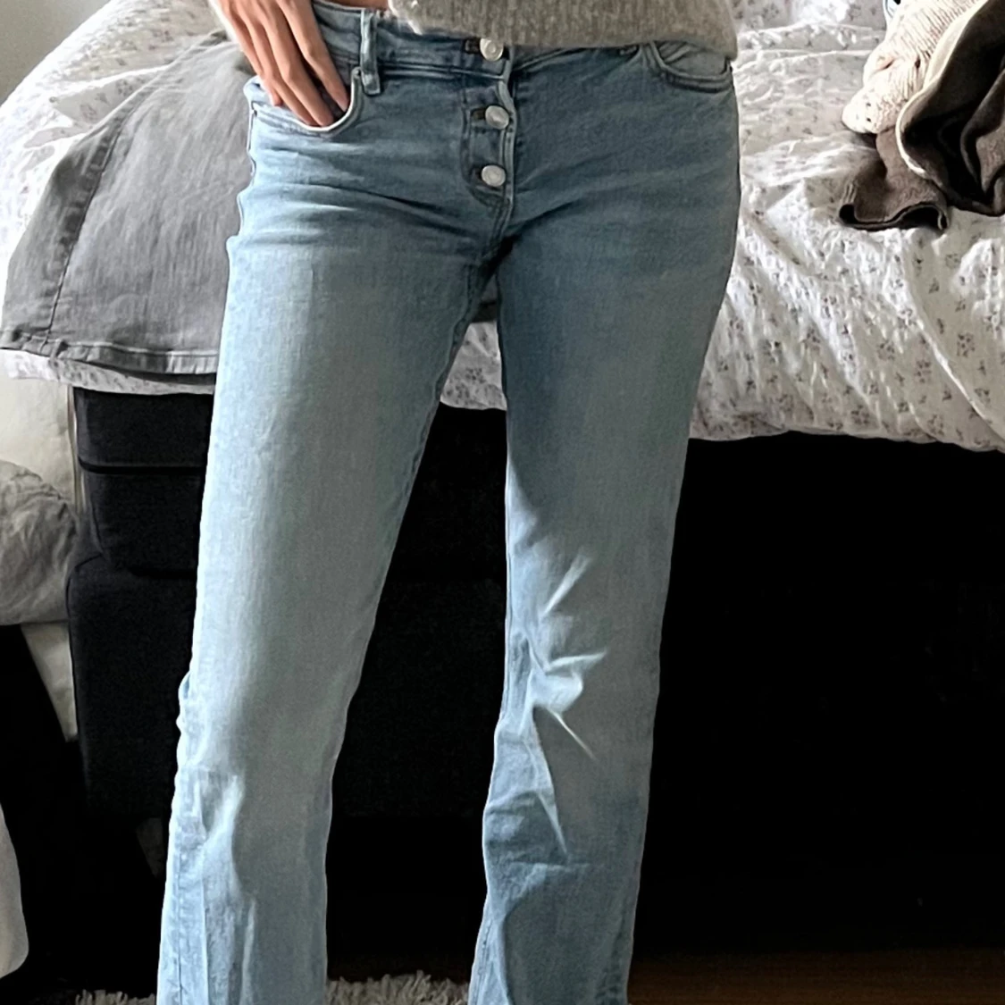Väldigt bra skick. Från Ginas barnavdelning i storlek 164/170. Jag är 1.66 och dom sitter jättebra i långt på mig!😍