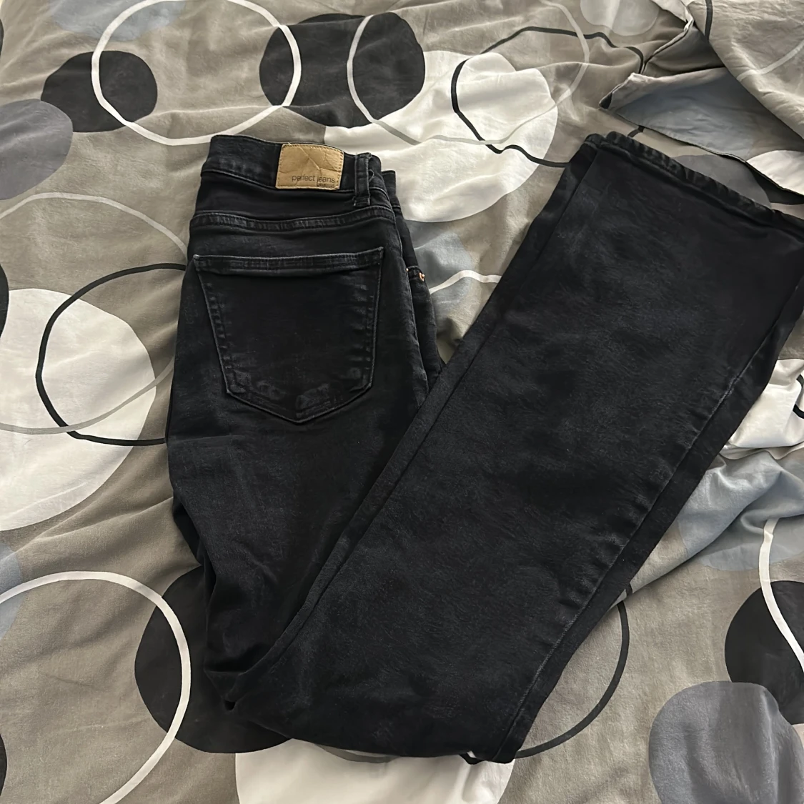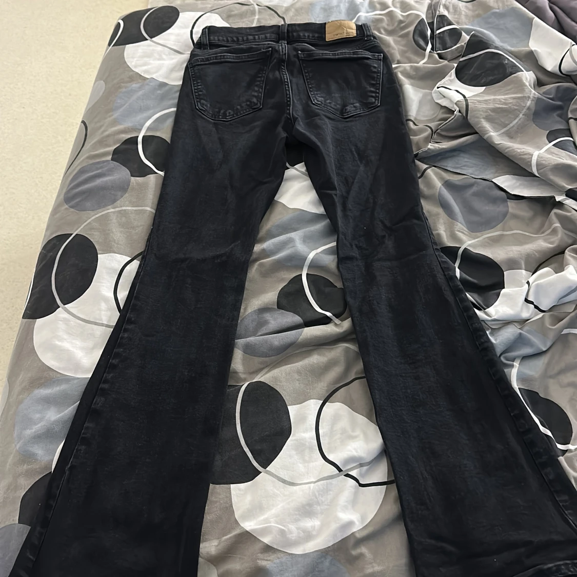 säljer dessa svarta botcut jeans från ginatricot då det inte är min stil längre och jag växt ut de. Skulle säga att de är midrise💖. Materialet är oxå ganska stretchigt. midjemått: 34 inrebenslängden: 76