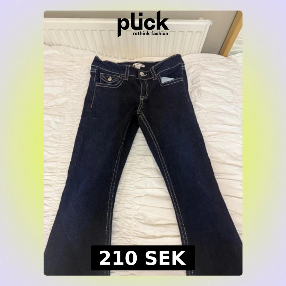 Supersnygga lågmidjade mörkblå jeans med vita sömdetaljer och klassisk femficksdesign med snygga fickor där bak från Gina Young!! De sitter jättefint och är i väldigt bra skick, använd få gånger och inga defekter!! Storlek - 164 motsvarar S 💓