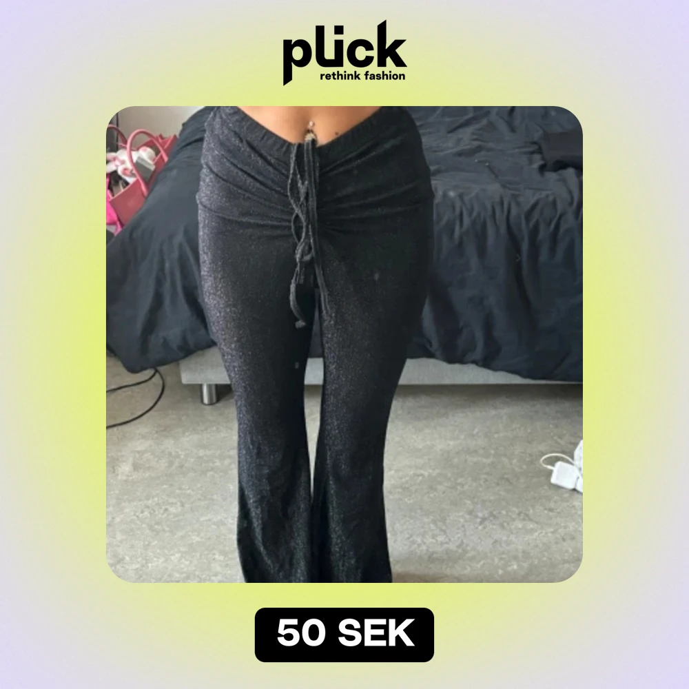 Glittriga utsvängda byxor, super stretchig passar 100% både xs och s, jag troor även M kan passa. Super fina men aldrig använda. Köpt på shein för några år sedan
