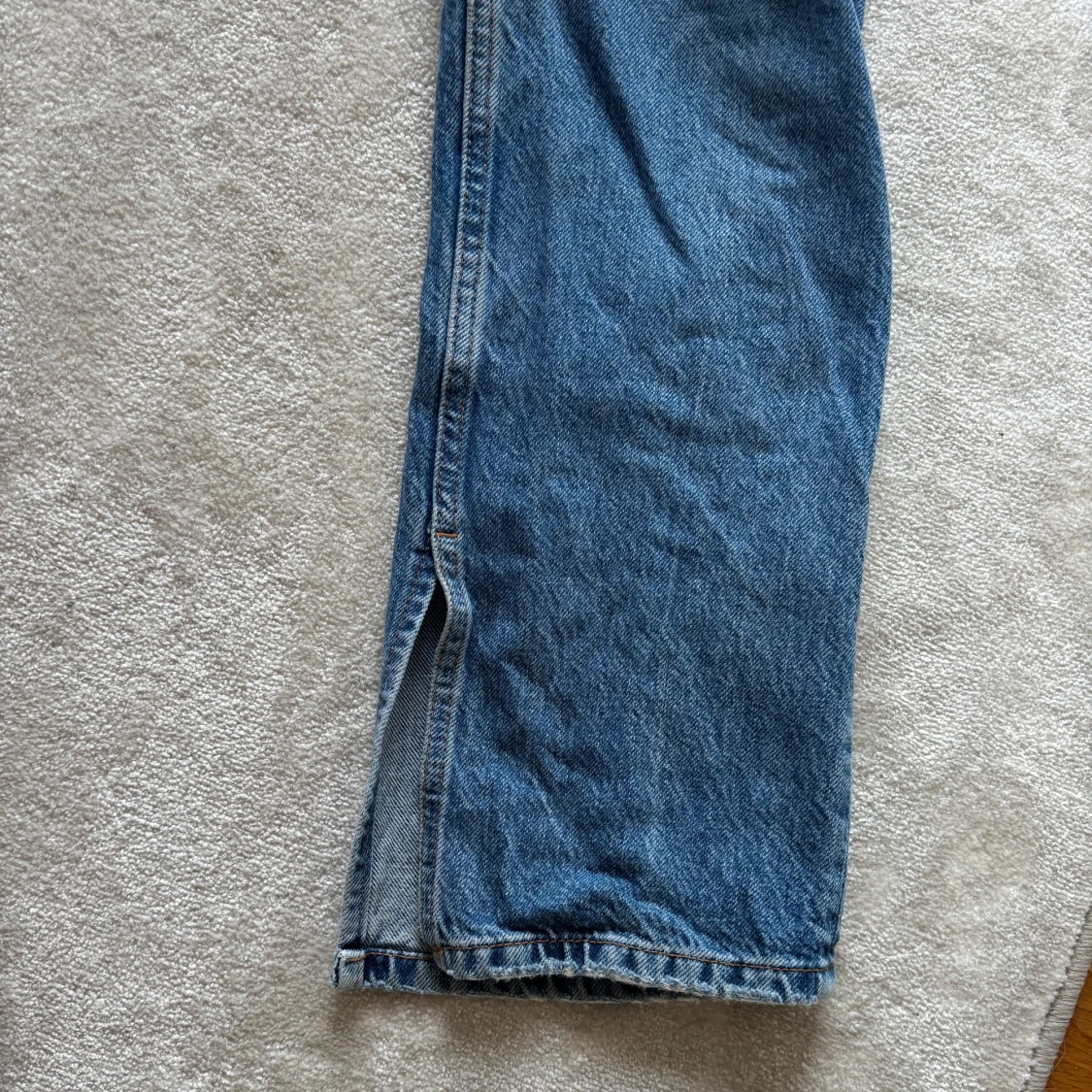 Säljer dessa raka/straight blåa jeansen från Ginatricot med slits!🥰 De är mid-rise☺️ Hör av dig vid funderingar!