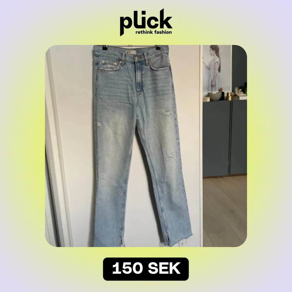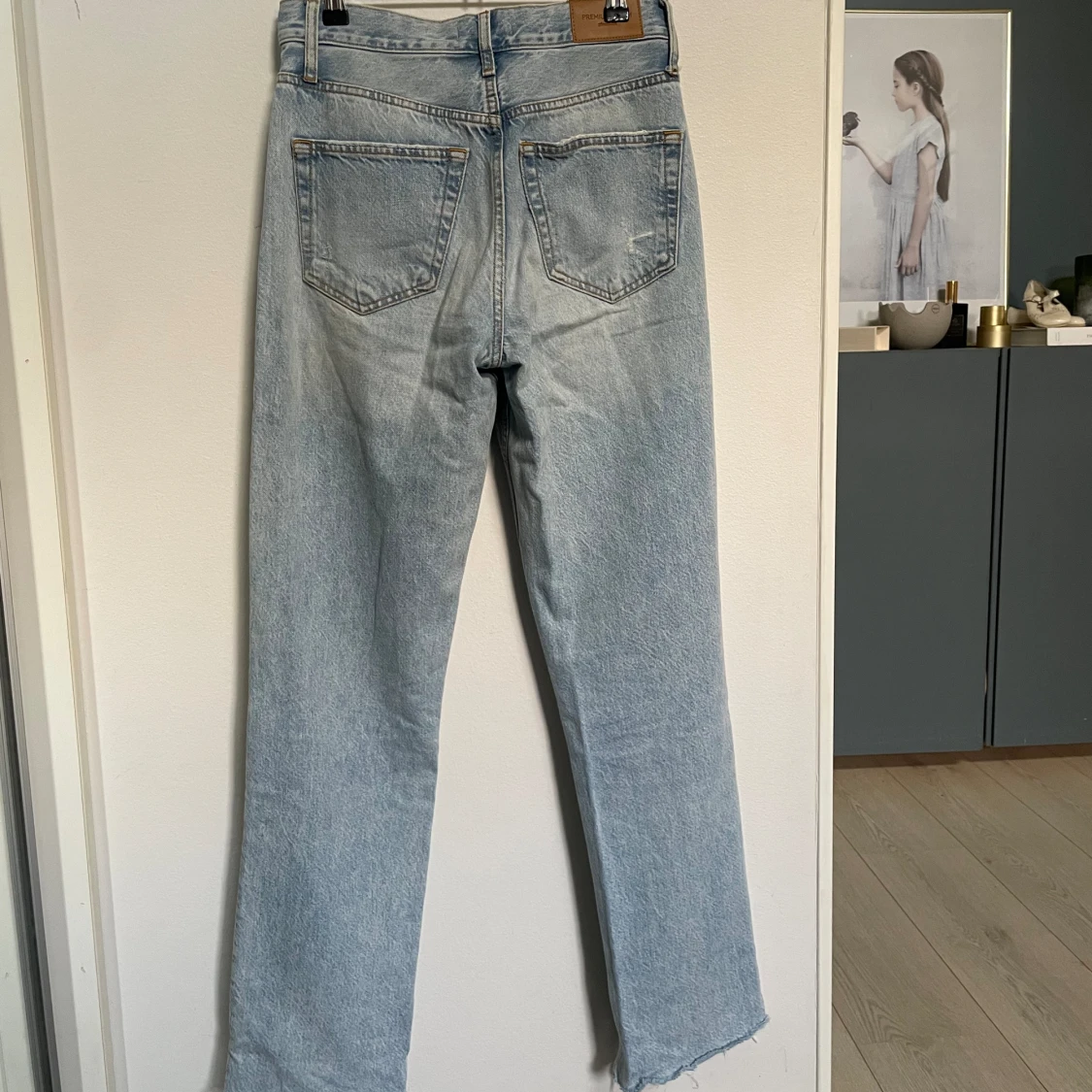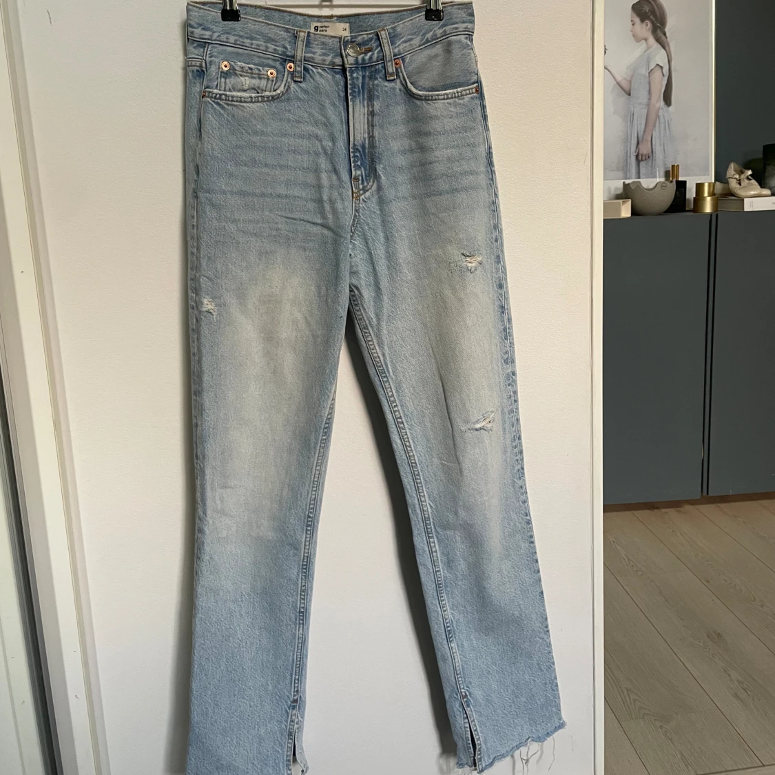 Ett par raka jeans från Ginatricot med slitningar och slitsar i ändarna. Hög/ mellan hög midja.