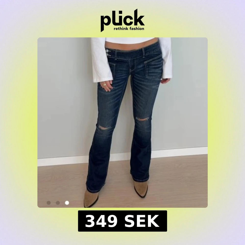 Helt oanvända, slutsålda, populära mörkblå jeans med flare och markerade sömmar från 14+. Säljer då de är för långa på mig och kan inte lämna tillbaka dem.