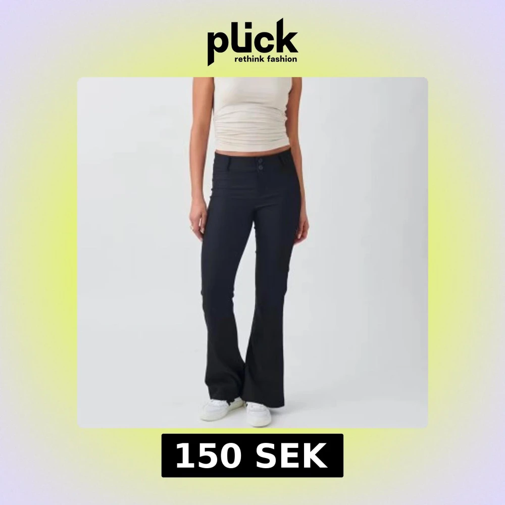 Virala y2k kostymbyxorna i färgen svart. Sitter tajt och jättefint på kroppen! Byxorna är köpt i petiet längd (Är själv 158)!