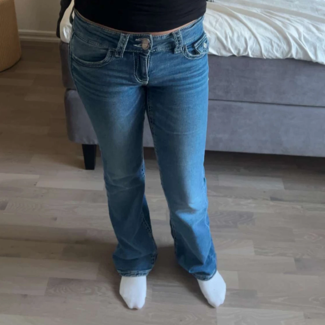Blåa jeans från GinaYoung i storlek 158 men passar mig som är en Xs! Jag är ca 160cm och jeansen passar mig perfekt💗Inga knappar på bakfickor! Pris kan diskuteras vid snabb affär💞