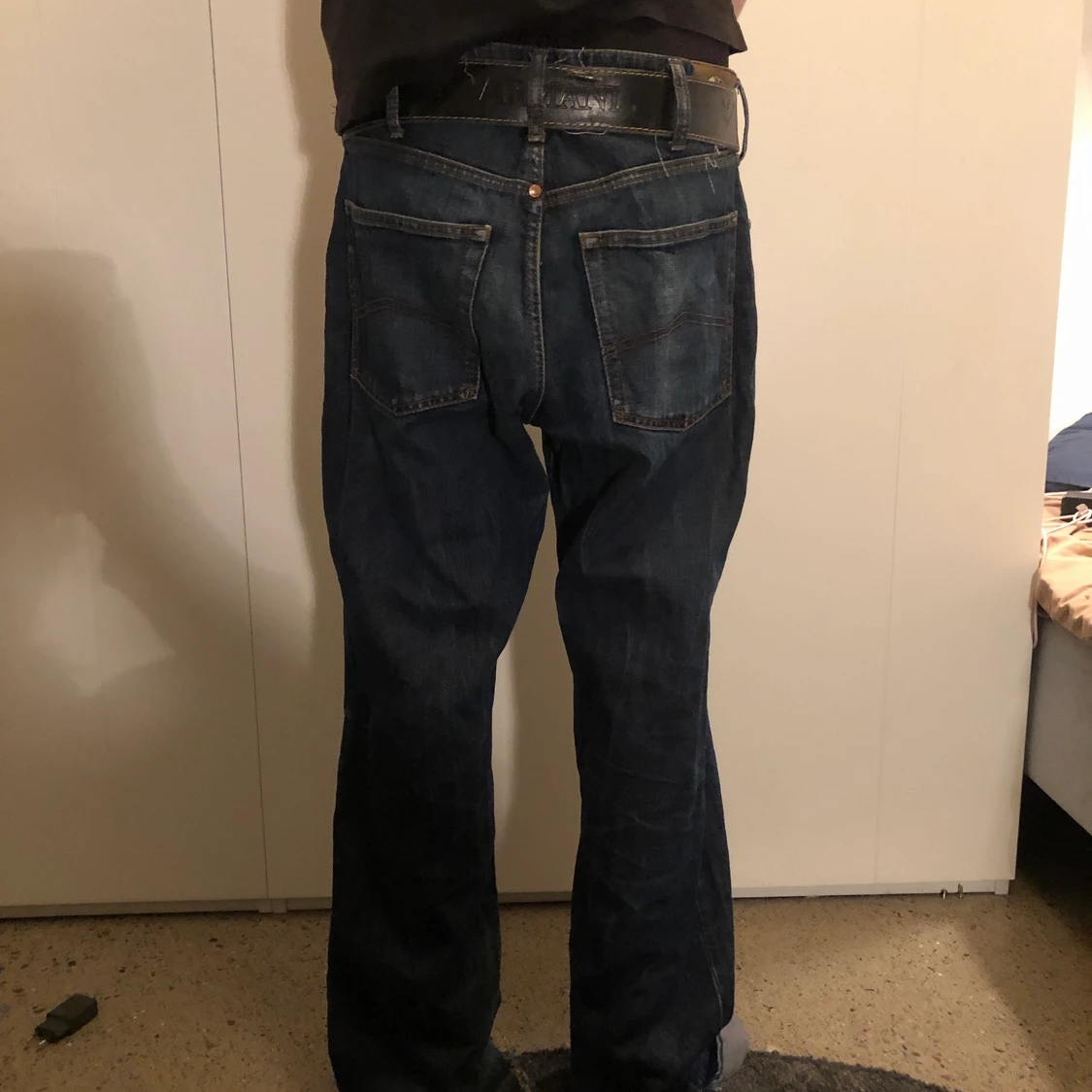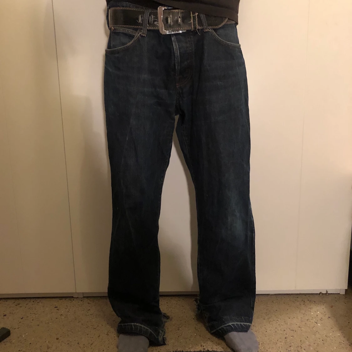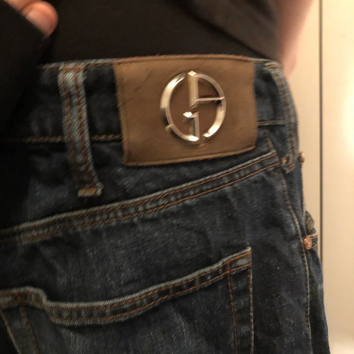 Snygga Armani byxor som sitter lagom baggy👍 skriv för fler bilder! Det är ingen dragkedja utan massa knappar men första knappen saknas men det syns eller märks ingenting sålänge man har ett bälte