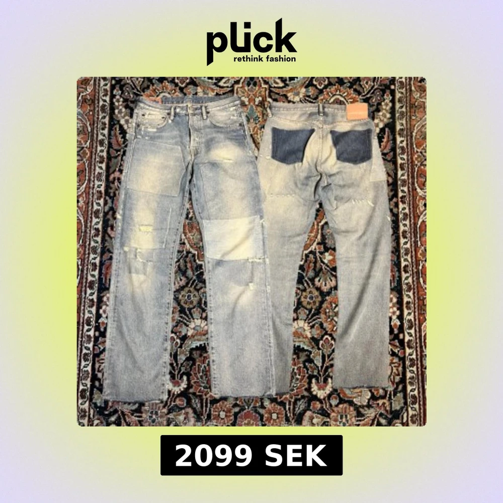 Helt otroligt snygga acne studios 1996 vintage patch köpte i acne studios 2019. Dessa är extremt limiterade då jag inte kunde hitta så många på webben men hittade ett par för 670$ därav är mitt pris väldigt bra för dessa jeans. Dem har helt otroliga detaljer som bakfickorna och patches där framme! Mått: 39,5cm Längd: 103cm Benöppning: 20cm