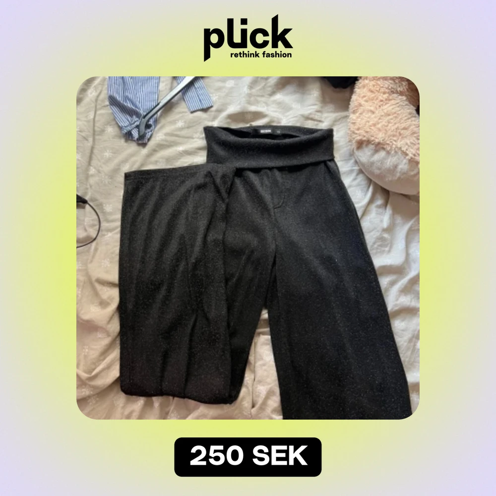 Sjukt snygga glittriga byxor ifrån bikbok som man viker ner vid midjan. Jag är 166 på bilden som referens för längd.