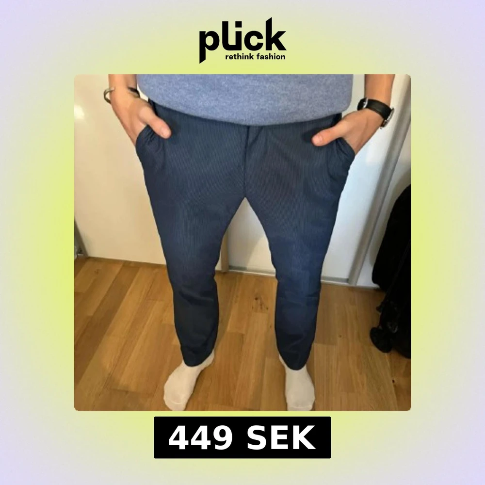Nästan helt nya snygga mörkblå Callaway byxor med diskret randigt mönster. Byxorna är perfekta för en stilren look och har en liten vit Callaway logga på baksidan. Nypris 900