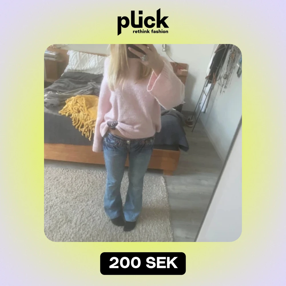 Lågmidjade bootcut jeans ifrån true religon, storlek 27, och de är i bra skick! Säljs pågrund av att dem inte kommer till användning längre💕