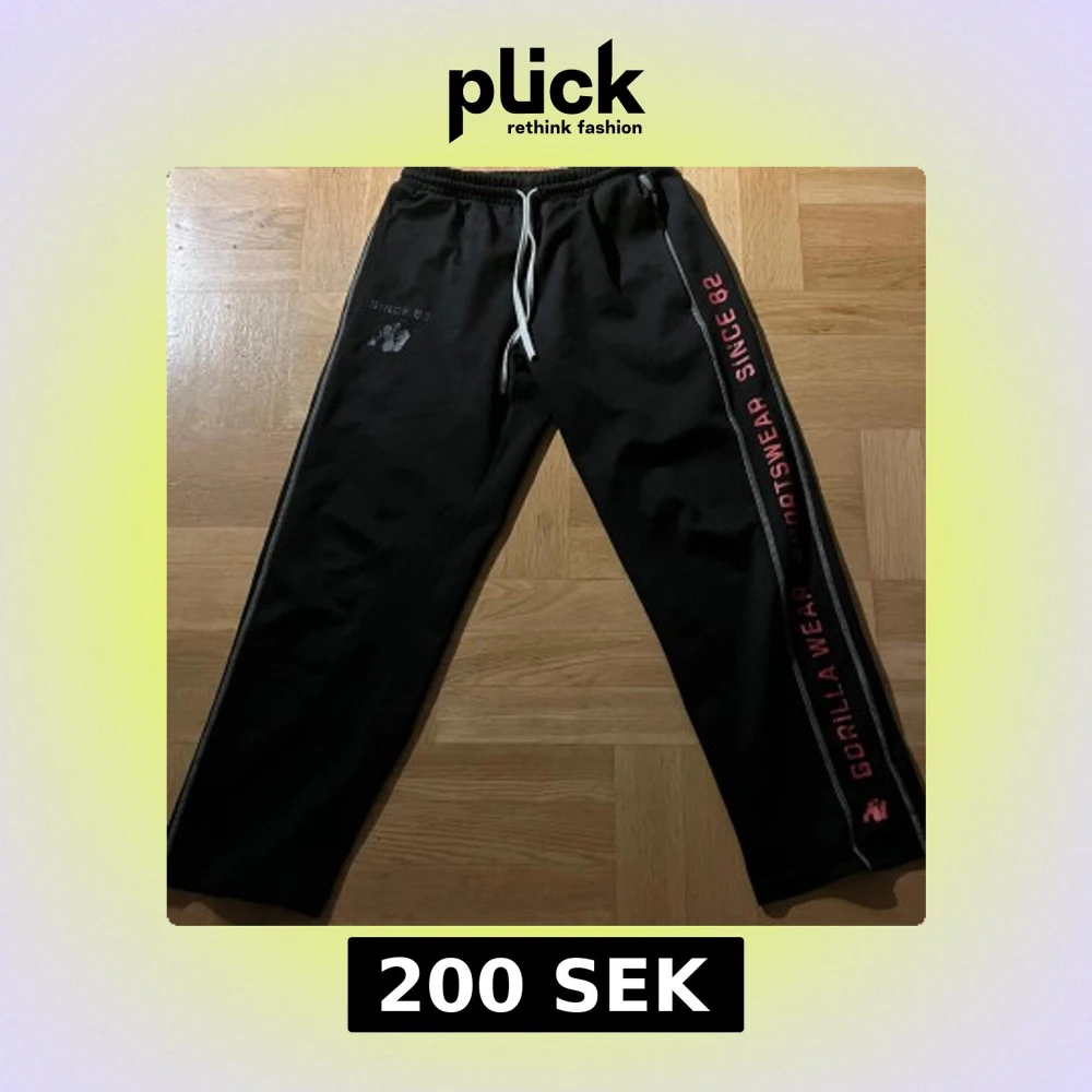 Svarta mjukisbyxor från Gorilla Wear med vit snörning i midjan och tryck längs benet.