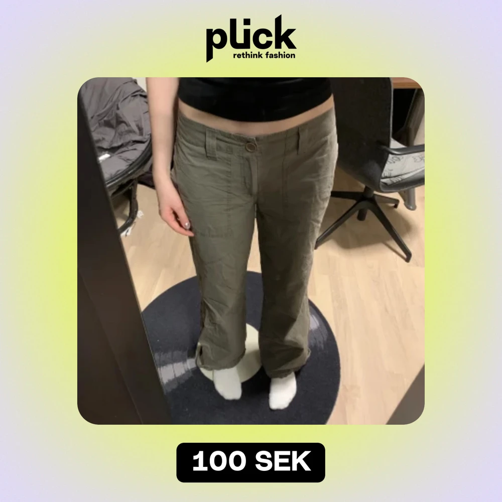 Khakigröna cargos med coola detaljer på benen🎀 Storlek 34 men passar mig som är S/M i byxor. Svarar gärna på frågor om mått, prisförslag osv❤️