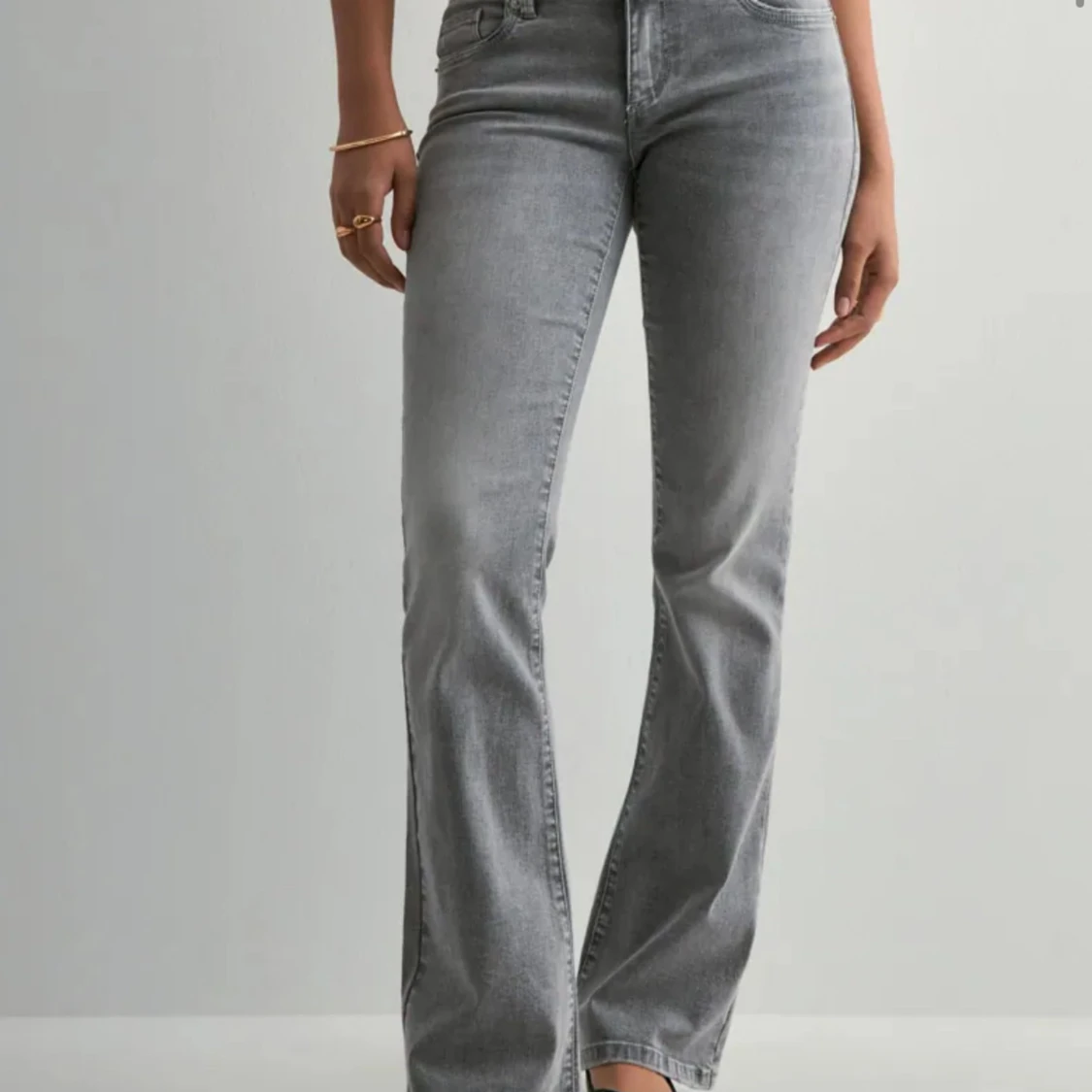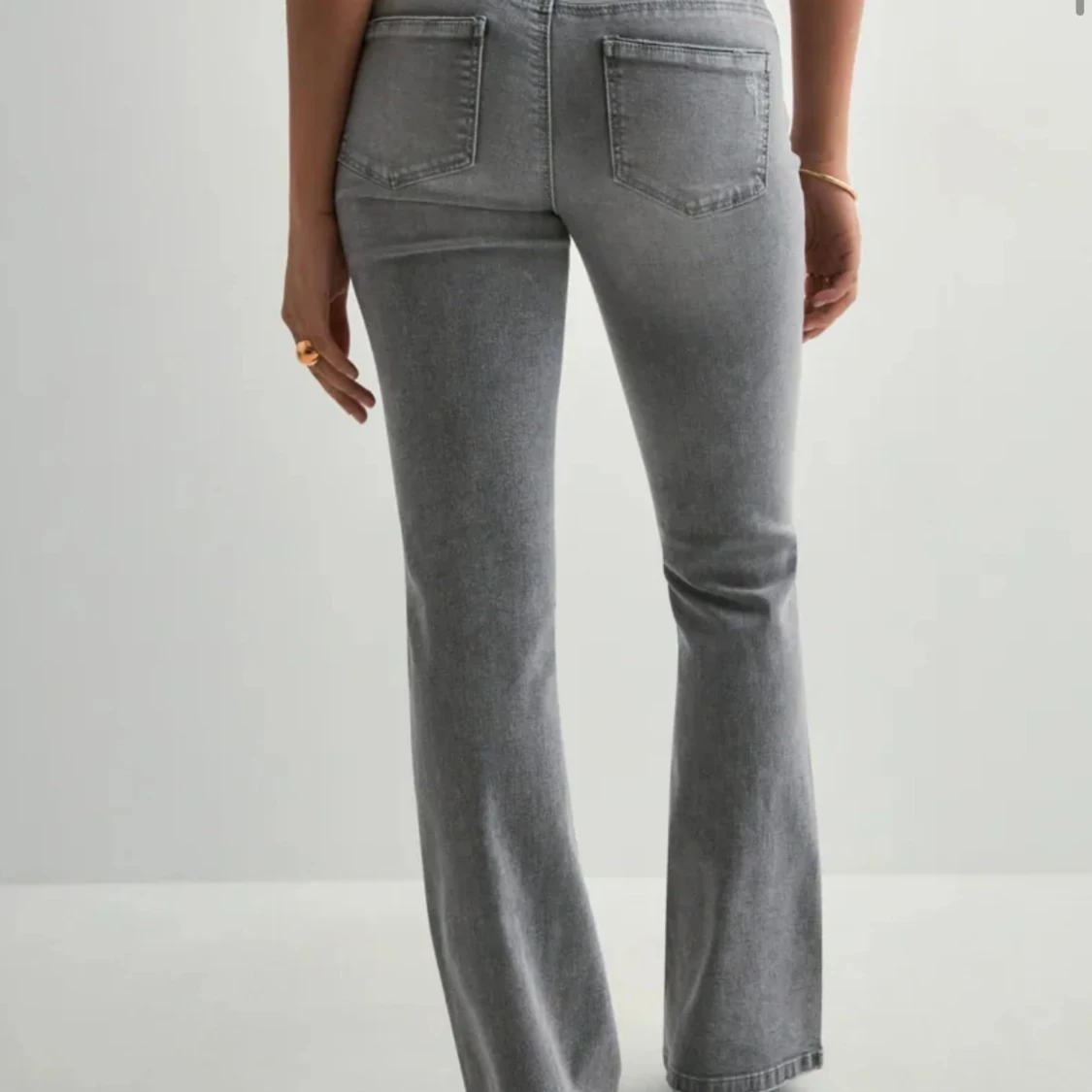 Snygga grå jeans med bootcut passform och klassisk femficksdesign. Jeansen har låg-mid midja och bootcut. Tillverkade i mjukt denimtyg som ger en skön känsla och stilren look. Säljer pga att jag inte tycker jag själv passar i dom då de är lite för korta för mig. Mått finns i 3e bilden. De är i helt nytt skick men har dock tagit av prislappen 💕
