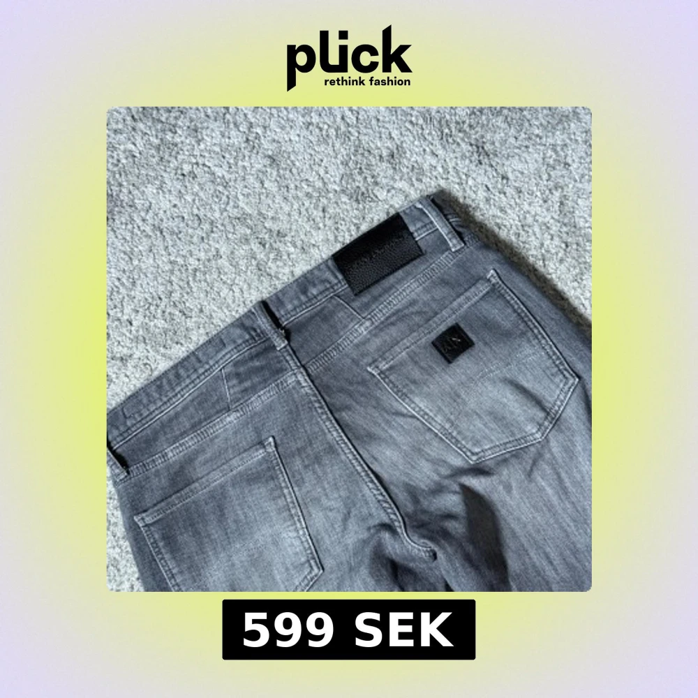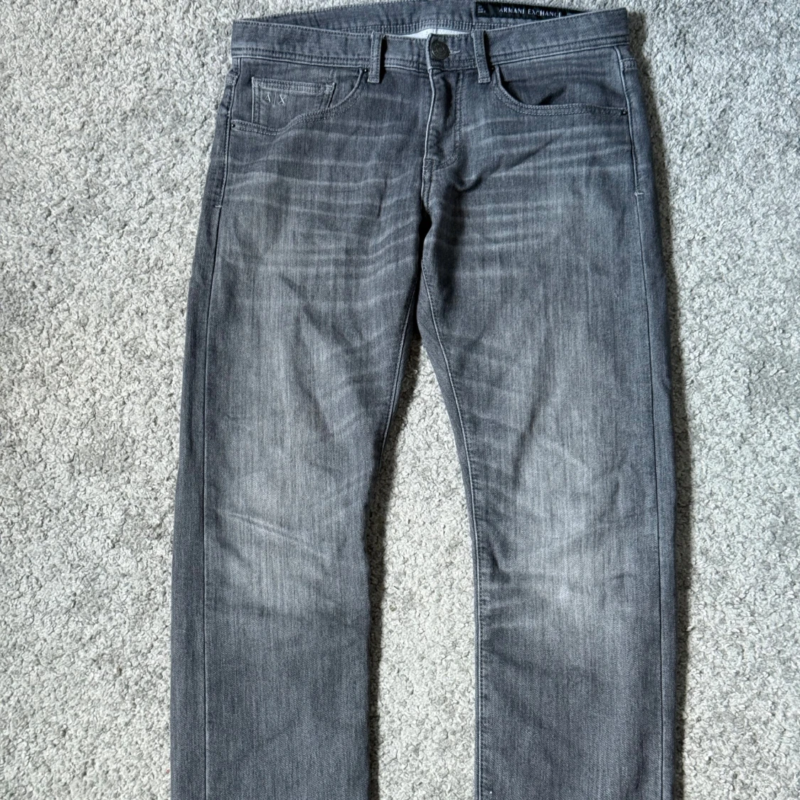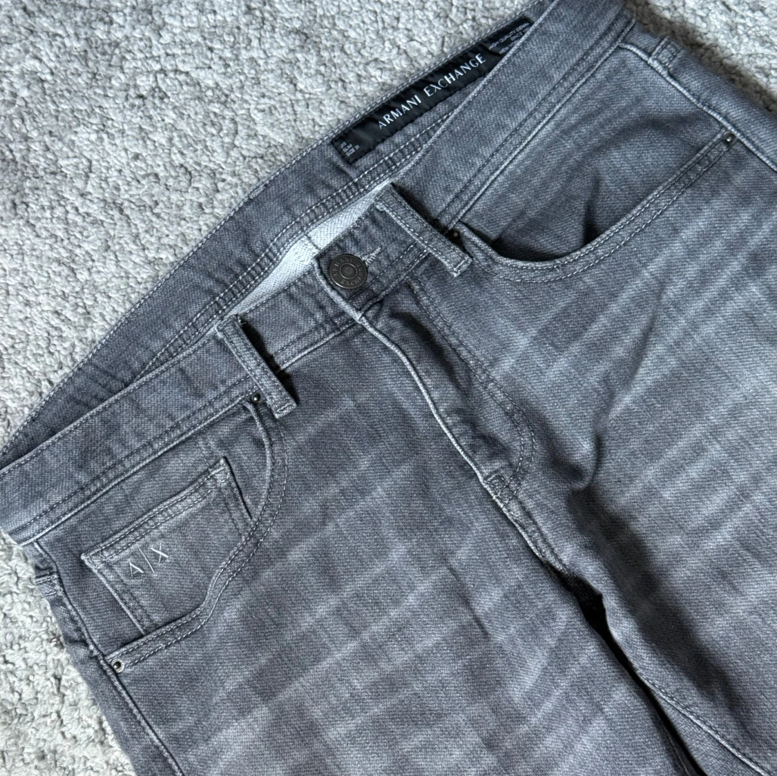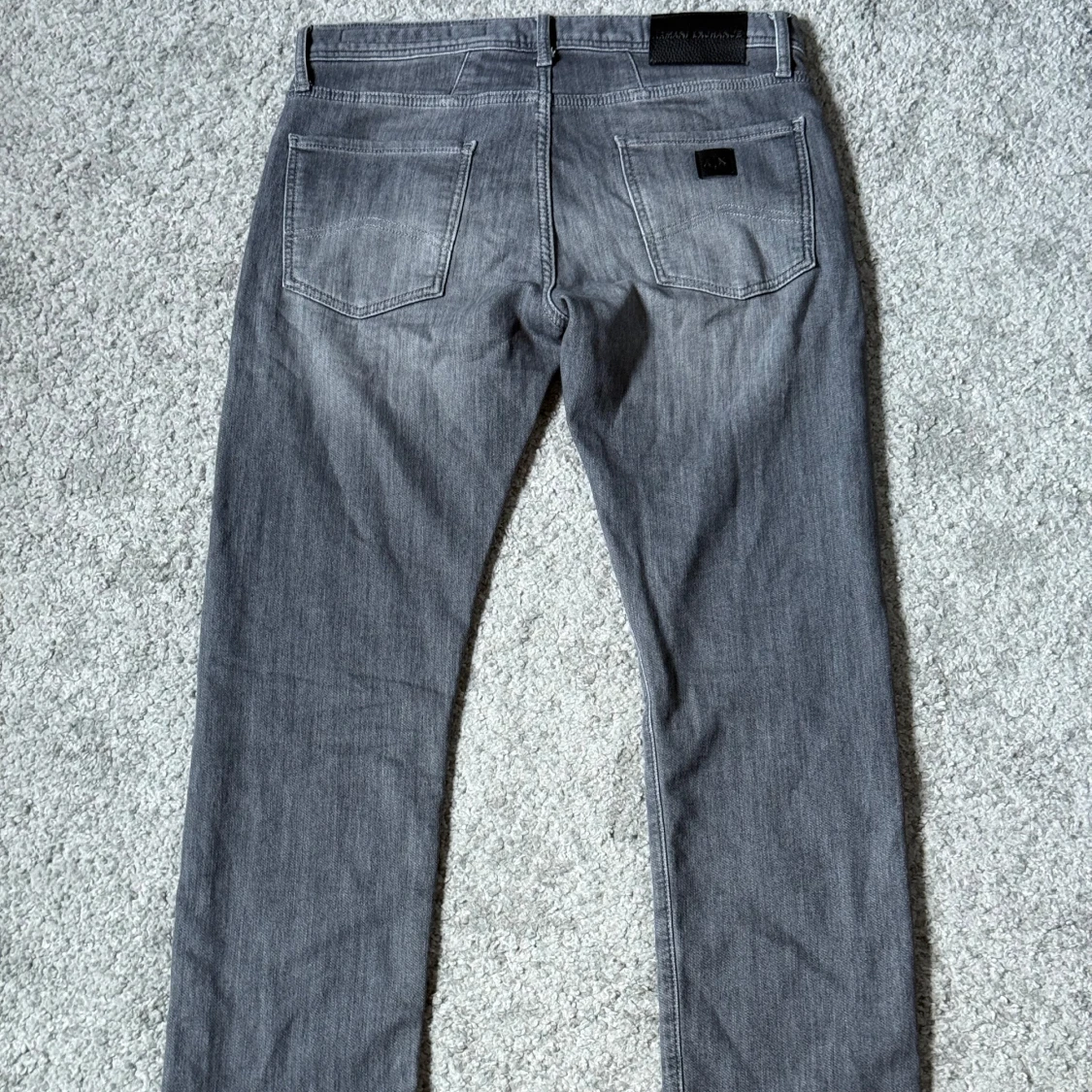 Snygga grå jeans från Armani Exchange med klassisk femficksdesign och diskret logga på bakfickan. Storlek 31x30. Jeansen har en rak passform och är tillverkade i mjukt bomullsmaterial med lite stretch för extra komfort. Perfekt för dig som gillar stilrena och moderna jeans.