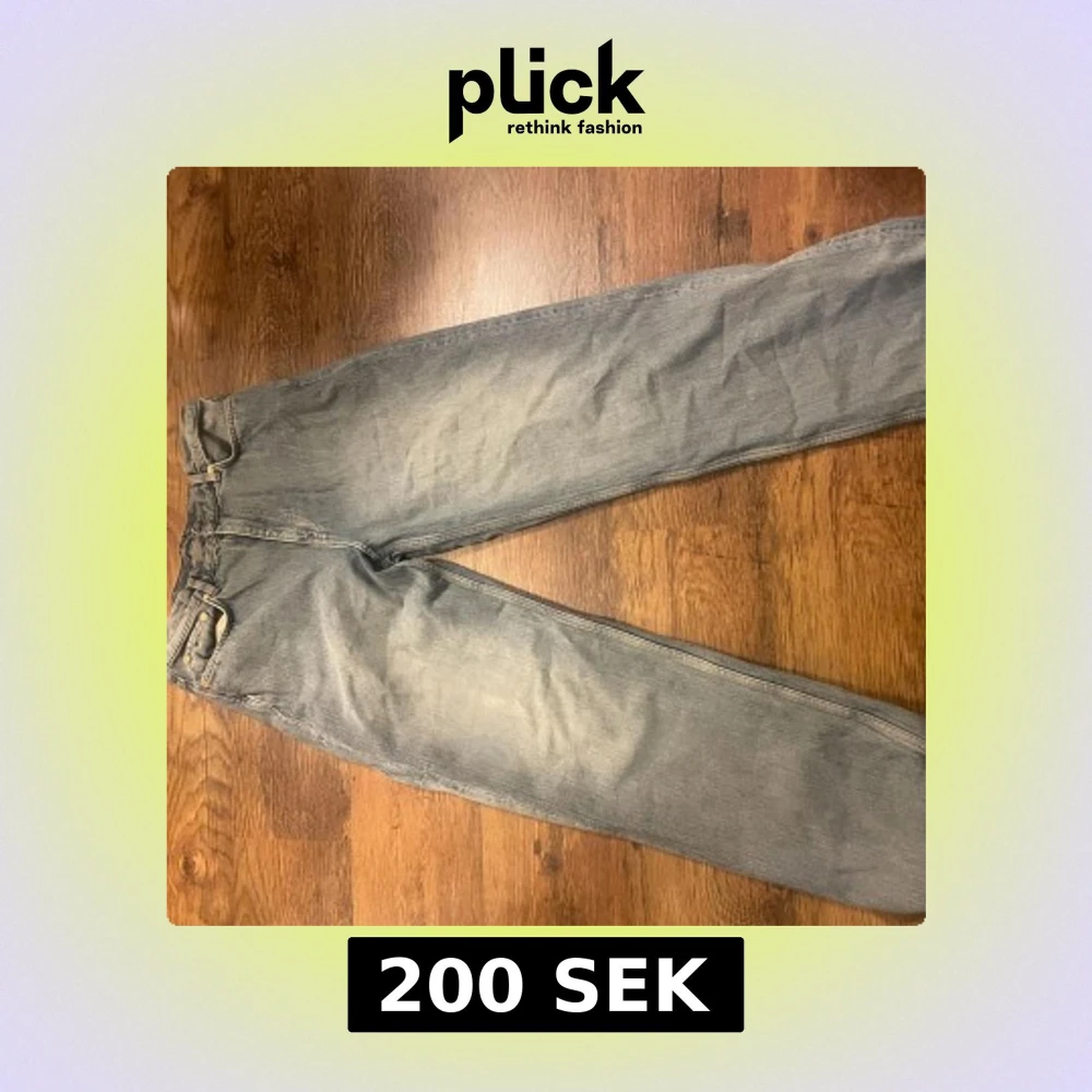 Säljer ett par grå jeans från Weekday, modell Galaxy Loose Straight. De har en avslappnad passform och är perfekta för baggy stil