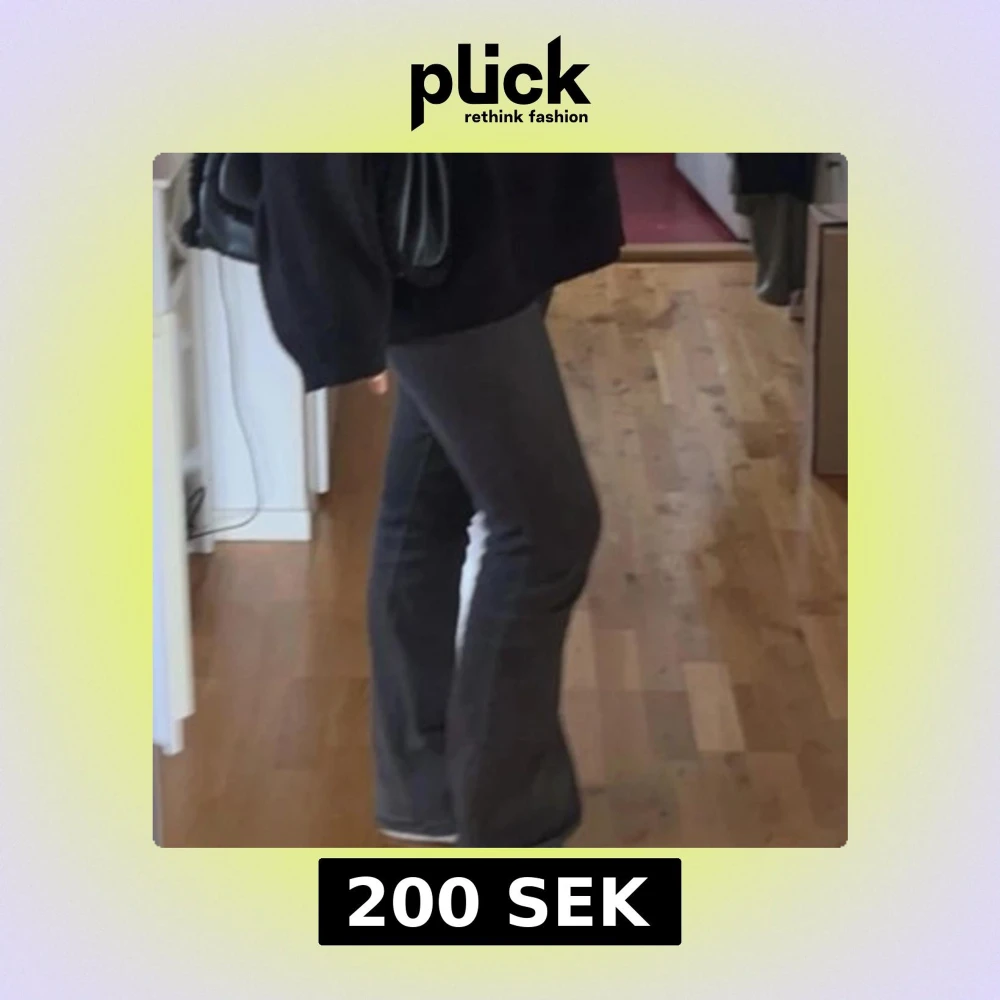 Säljer ett par gråa jeans med bootcut. Jeansen har klassiska bakfickor och bälteshällor, och är tillverkade i ett mjukt denimtyg. Snygg passform som sitter tajt upptill och släpper ut vid bensluten.