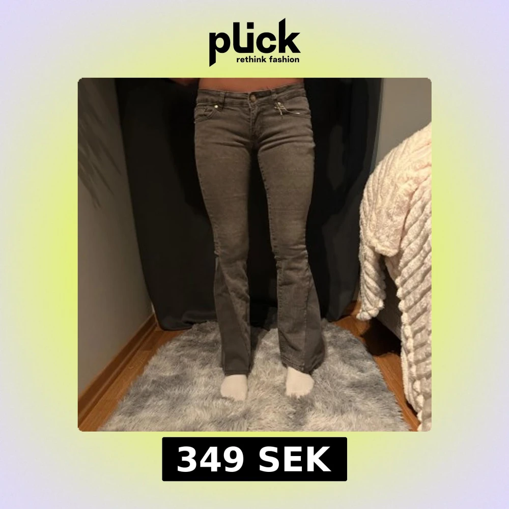 Snygga grå bootcut jeans med låg midja och klassisk femficksdesign. Lågmidjade bootcut Omsydda jeans Grenmått: 17 cm Midjemått: 33 cm Innerbenslängd: 71 cm