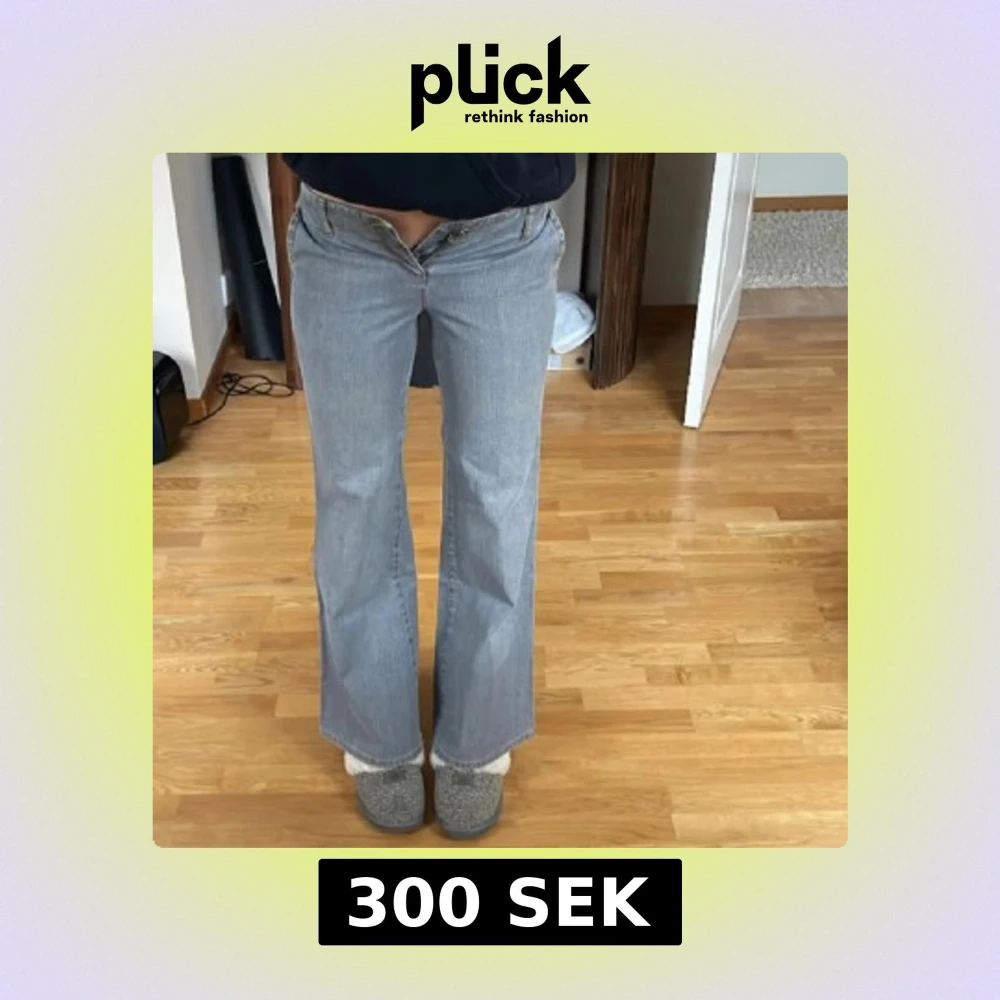 Snygga grå/blåa bootcut jeans från Roger's. Lågmidjade och utsvängda.