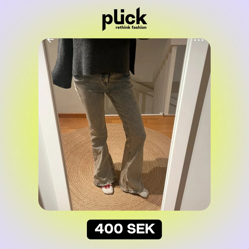 Säljer ett par grå bootcut jeans i bra skick. De är lågmidjade och har en klassisk femficksdesign. Perfekta för en avslappnad stil och passar till både vardag och fest. Sköna och trendiga!