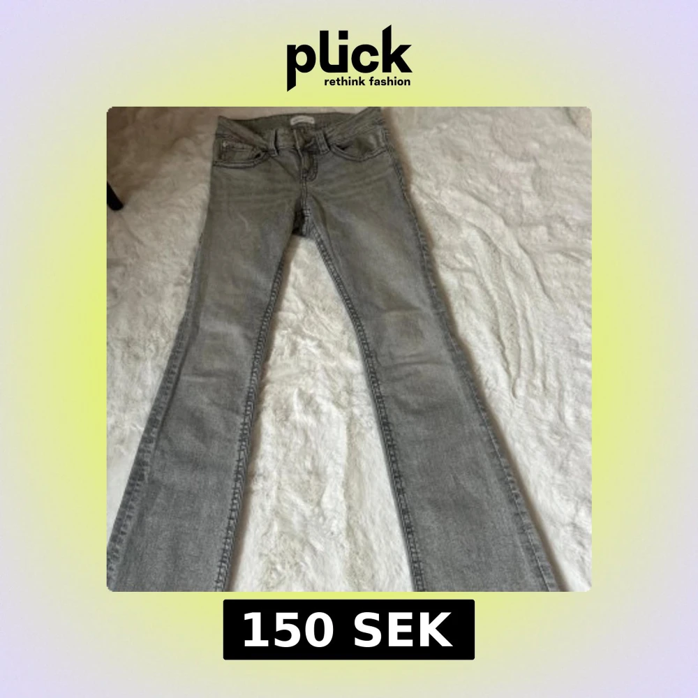Snygga grå jeans från Perfect Jeans Gina tricot i bootcut-modell. Jeansen har klassisk femficksdesign, coola bakfickor med lock och knapp, samt en bekväm midja. Perfekta för dig som gillar en avslappnad men trendig look.