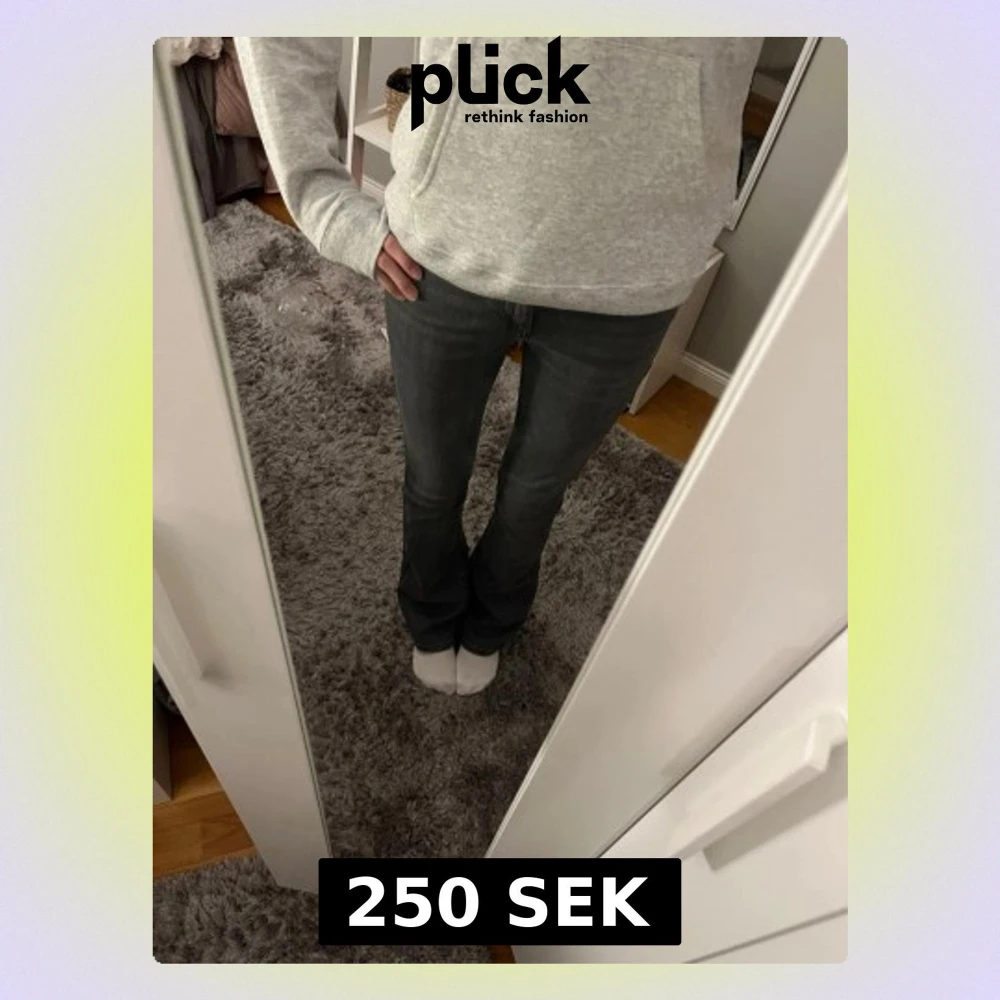 Säljer dessa jättesnygga gråa bootcout jeansen i storlek xs/34💗Jeansen är i bra skick och nästan aldrig använda, men säljer då de inte kommer till användning! Skriv för fler bilder eller frågor💗