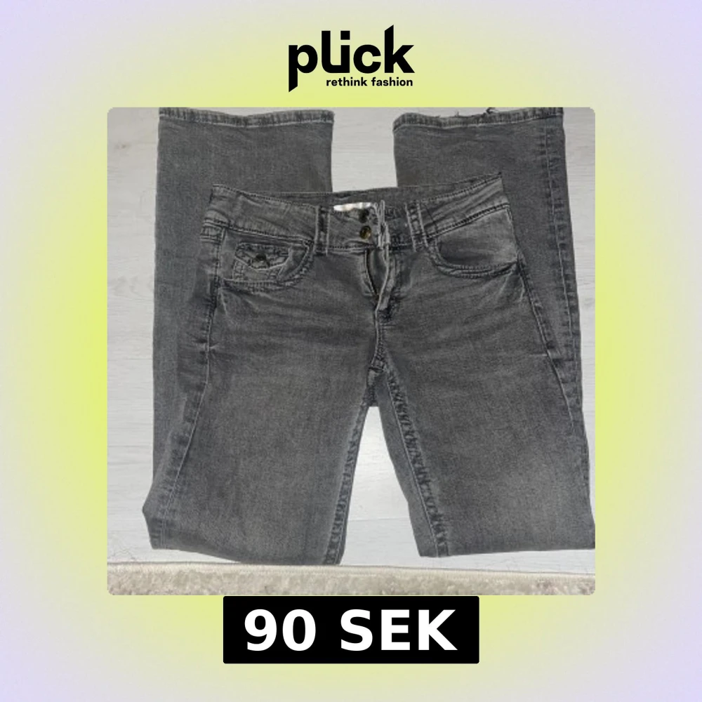 Snygga grå jeans från Gina Tricot med klassisk femficksdesign och knappgylf. De är Low Waits och bootcut. Pris går alltid att diskutera 💗