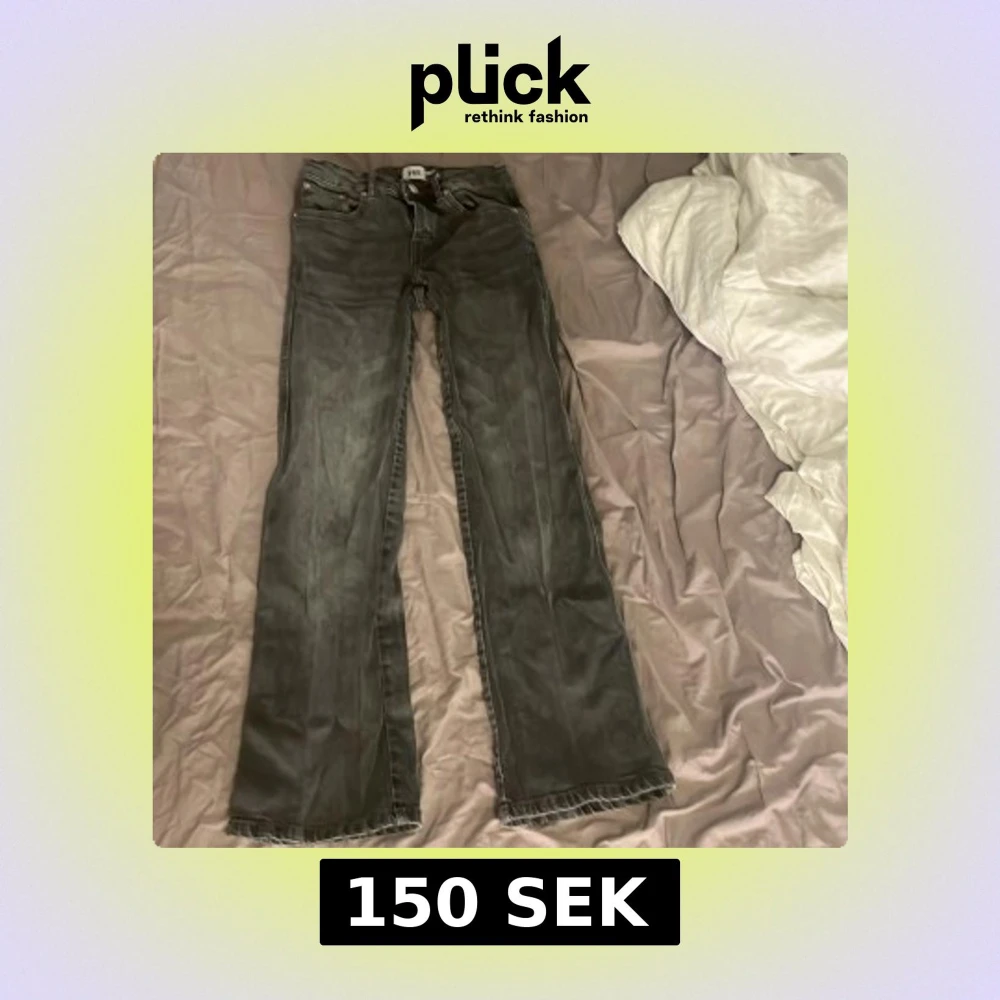 Snygga grå bootcut jeans från 157 i storlek XS. De har en klassisk femficksdesign och är perfekta för en avslappnad stil. Passar bra till både sneakers och boots.
