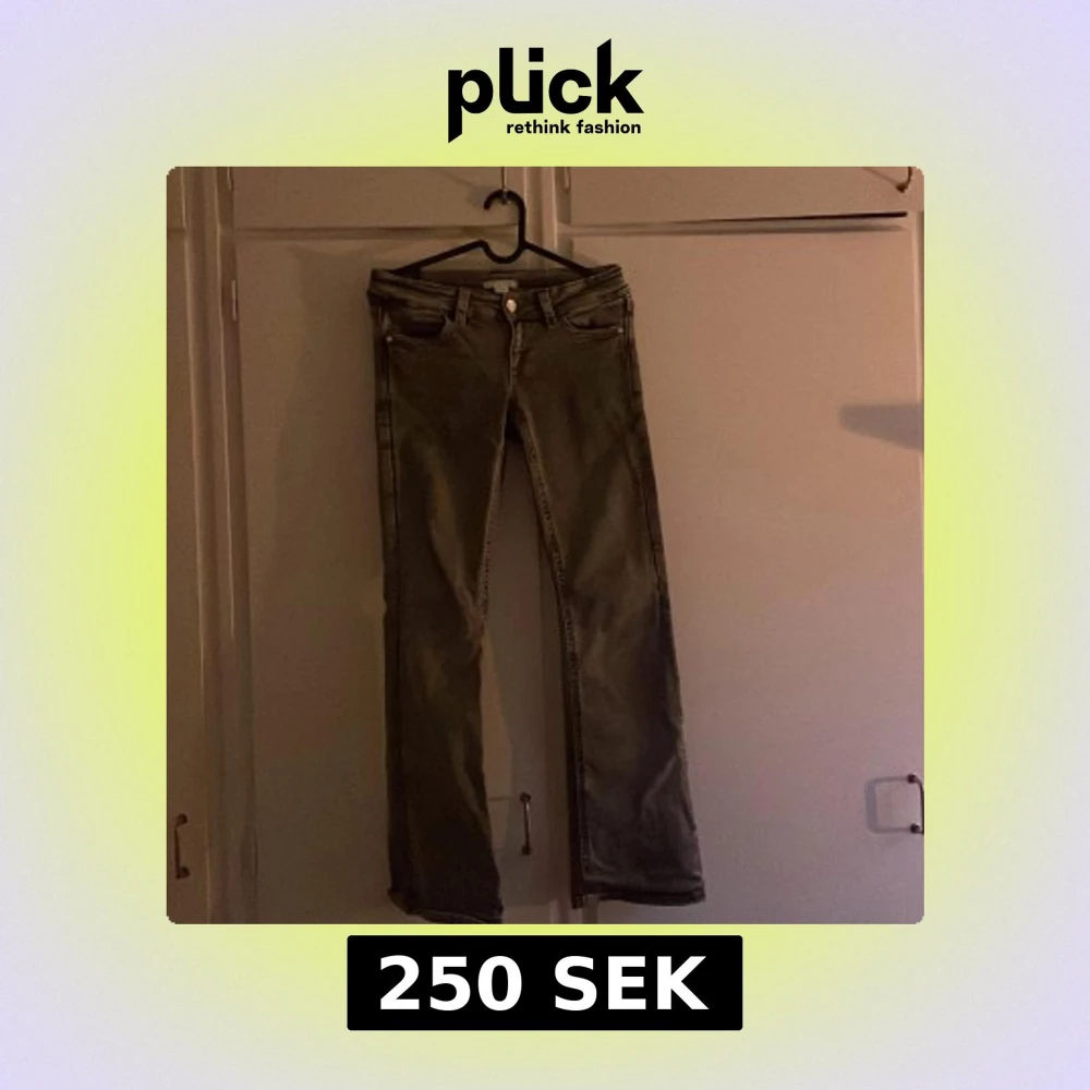 Snygga grå jeans från Gina Tricot i storlek 158. Modellen har bootcut-ben, klassiska fem fickor och bälteshällor. Jeansen är tillverkade i ett mjukt bomullsmaterial med dragkedja och knapp framtill. Perfekta för dig som gillar en avslappnad men trendig look.
