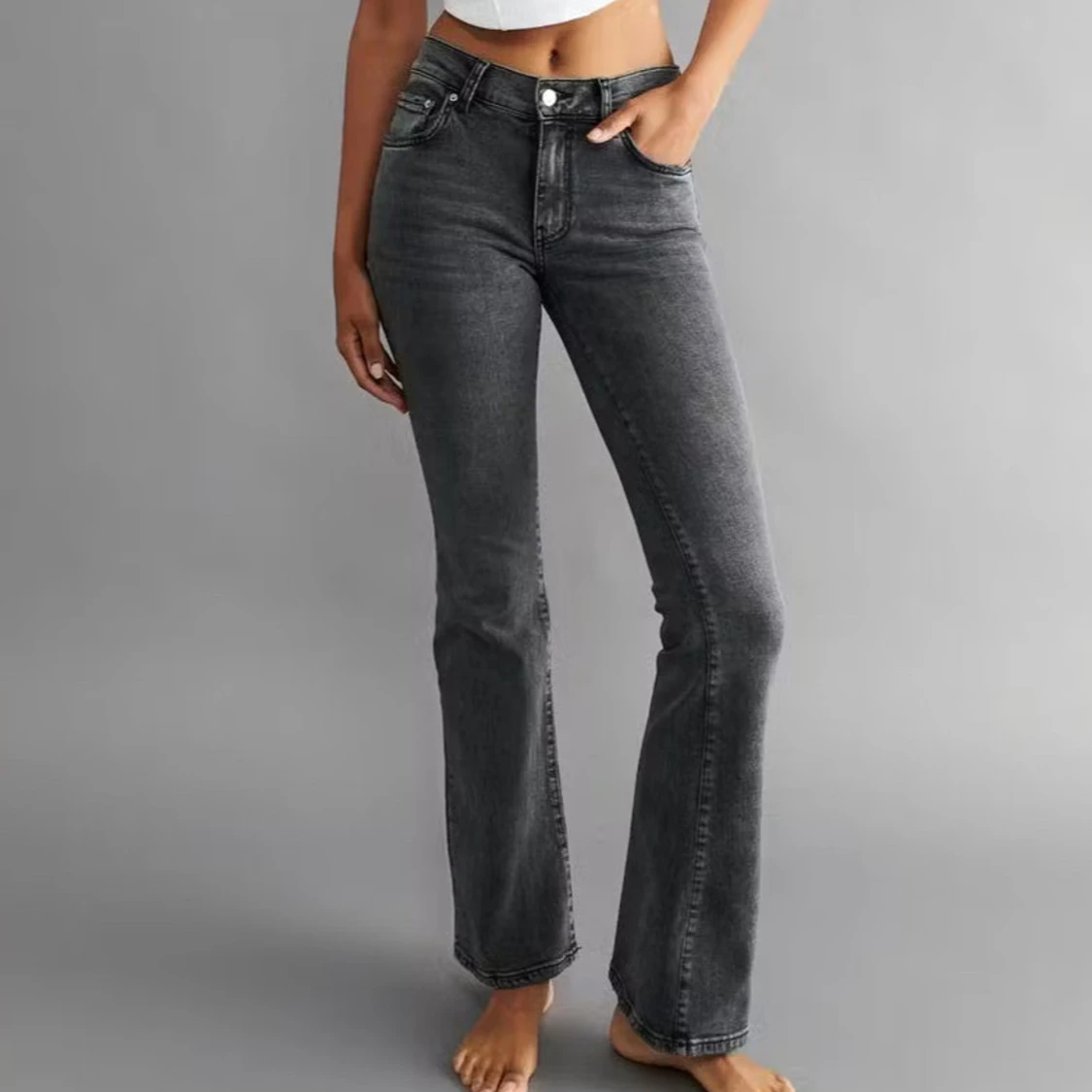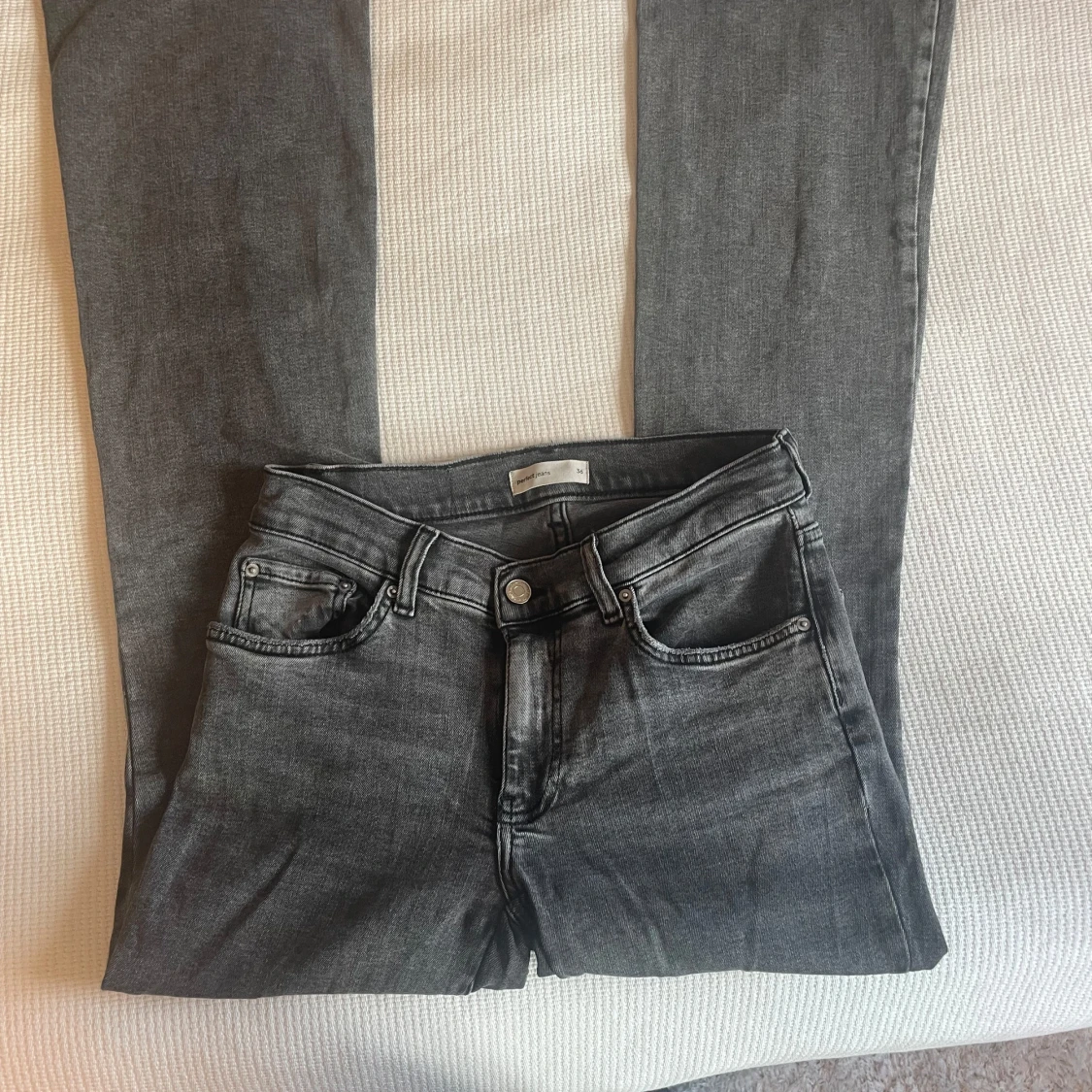 Snygga grå bootcut jeans från Perfect Jeans. De har en klassisk femficksdesign och en knappgylf. Perfekta för en stilren look.