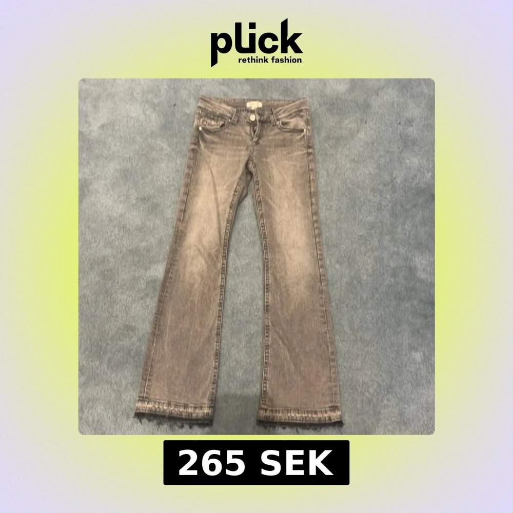 Snygga grå bootcut jeans från Gina Tricot. De har en klassisk femficksdesign och en knappgylf. Perfekta för en avslappnad stil. Kanske bara använts 3-4 gånger eftersom det var försmå när jag köpte dem.