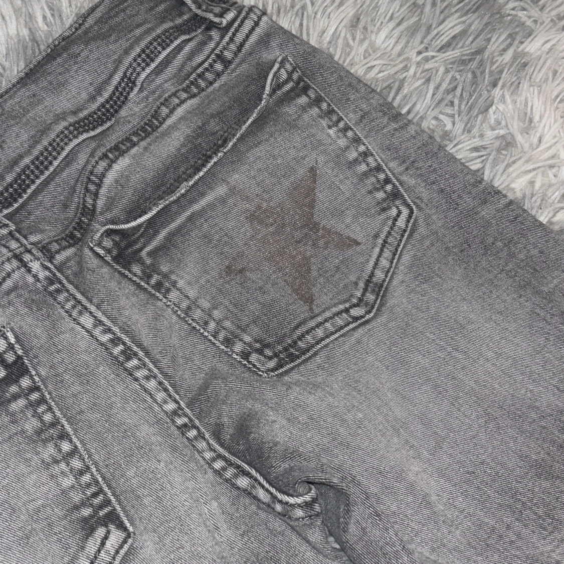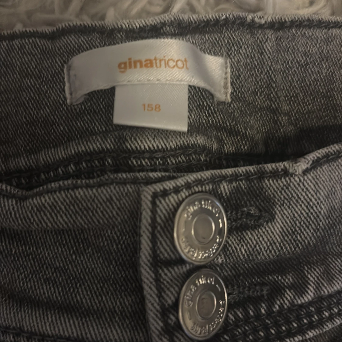Snygga grå jeans från Gina Tricot i bootcut-modell. Jeansen har en cool stjärndetalj på bakfickan och dubbla knappar framtill. Tillverkade i klassiskt jeanstyg med en lätt tvättad look. Perfekta för dig som gillar en avslappnad men trendig stil.