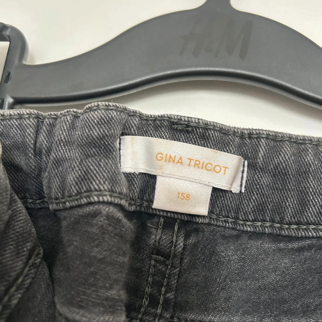 Snygga grå bootcut jeans från Gina Tricot. De har en klassisk femficksdesign och en bekväm passform. Perfekta för en avslappnad stil med en touch av retro. Dessa är lågmidjade i storlek 158.