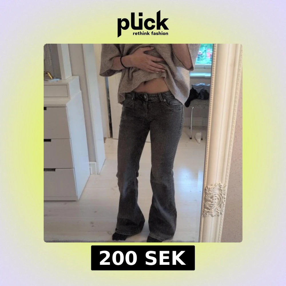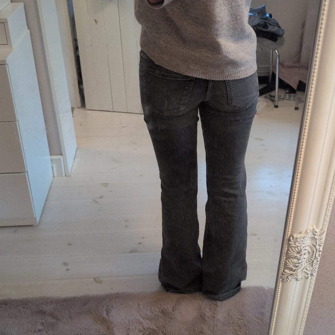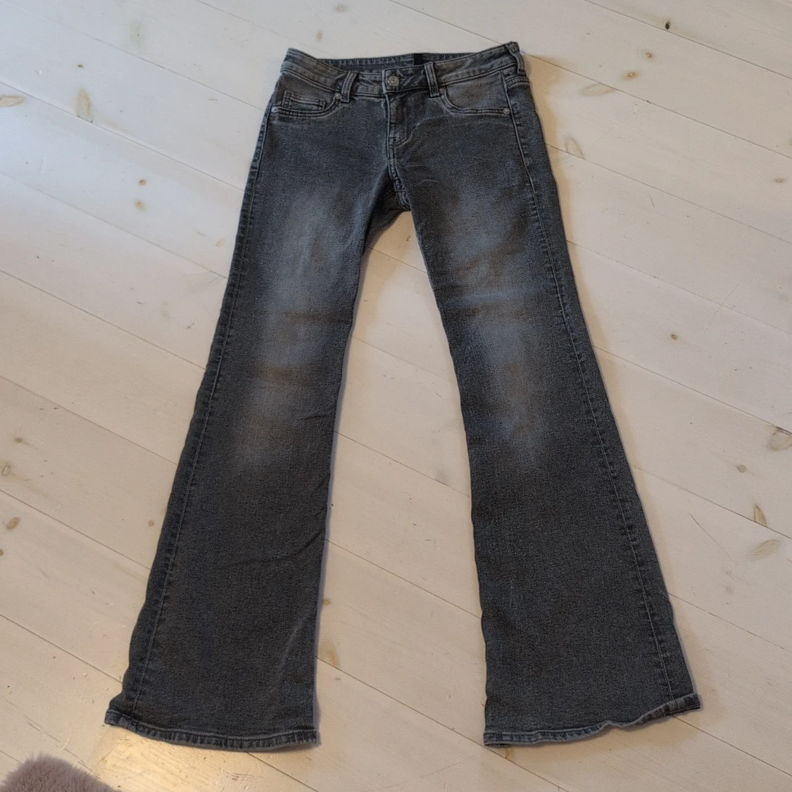 Snygga grå jeans från H&M Divided i bootcut-modell. Jeansen har klassisk femficksdesign, låg midja och är tillverkade i mjukt denimtyg. Perfekta för dig som gillar en avslappnad men trendig look.